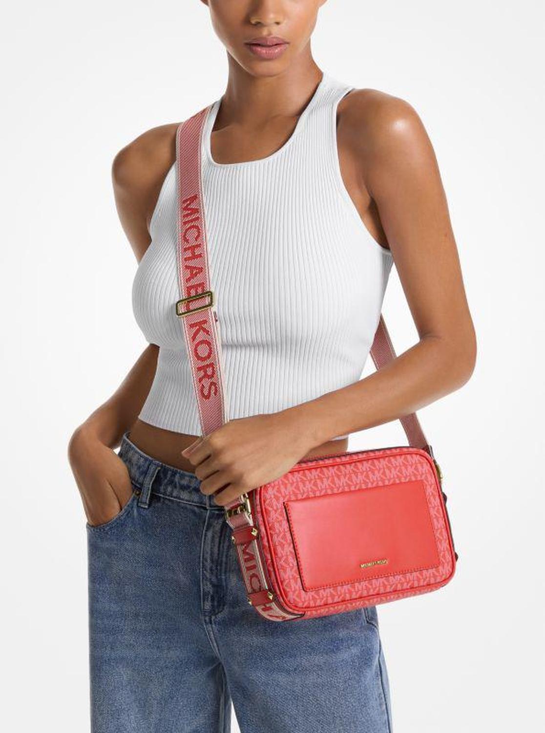 • Equal parts casual and chic, our logo-print Maeve crossbody is a tribute to signature style. Featuring a logo tape strap for a sporty twist, it’s designed in a camera-inspired silhouette with faux leather accents for luxe appeal. We love how the multiple slip pockets offer easy organization on the go.