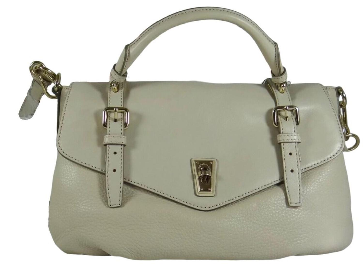 Made of Pebbled leather, This Marc by Marc Jacobs satchel rules the day with its clean, Classic sand-color design and portable size, Brass hardware, Tonal topstitching, Piped single handle with 4 Inch drop. Detachable flat leather shoulder strap, 18 to 23 Inch drop, Turn-lock closure at flap, Front pocket under flap. Inside zip pocket and two open pocket, Dustbag included, Style - M3122066. Measurements - Length - 14 x Height - 7 x Width - 4 Inches. Comes with original tags.Size - Medium