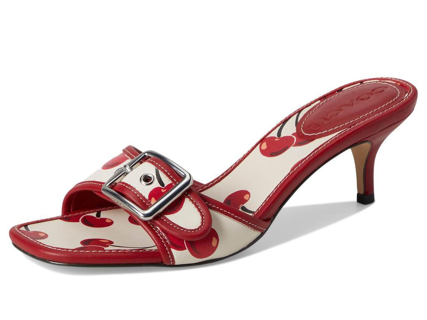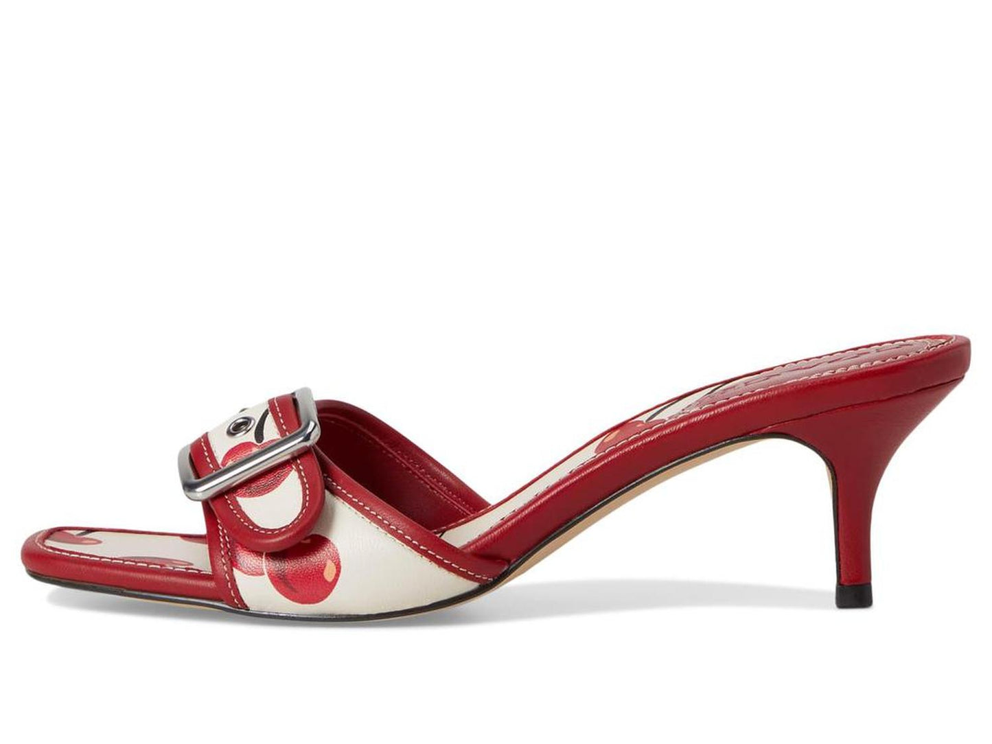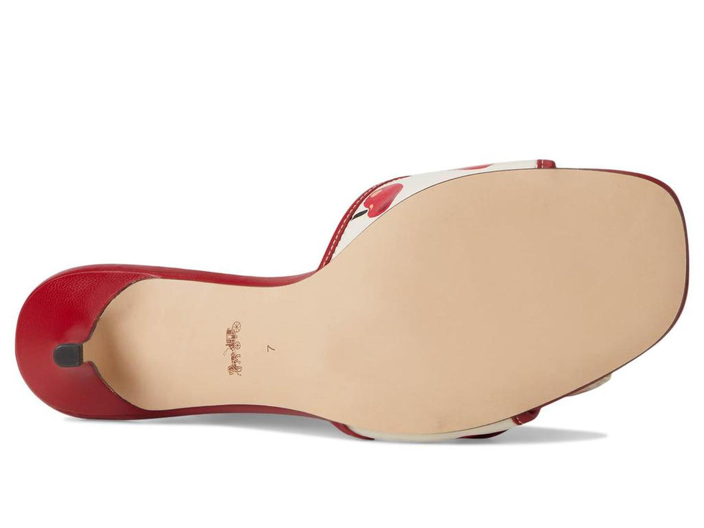 Styled with a cherry print for a chic look, style up your looks and outfits with the COACH® Margot Sandals With Cherry Print. These heeled sandals are made of a leather upper, leather footbed, and faux leather lining. Whether you're getting ready for a party or dressing up for a fashionista look, these slip-on heels are a great choice.