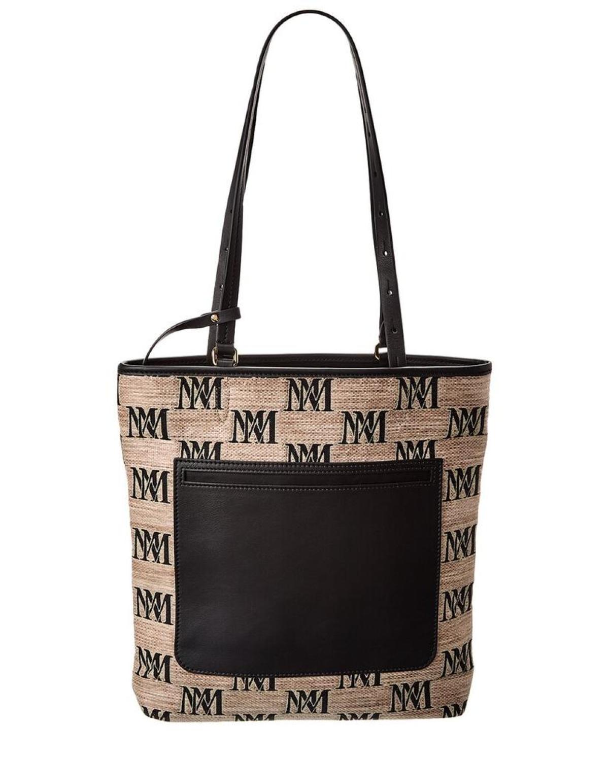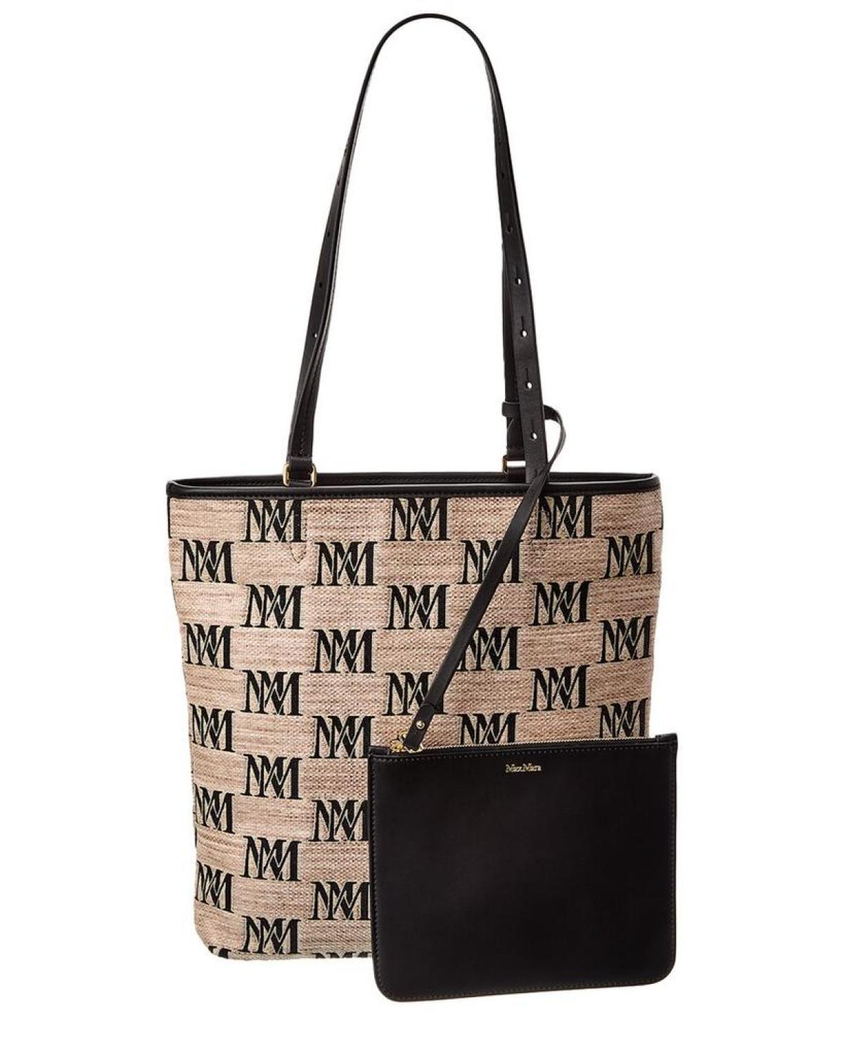 Max Mara All-Over Logo Print Leather-Trim Tote