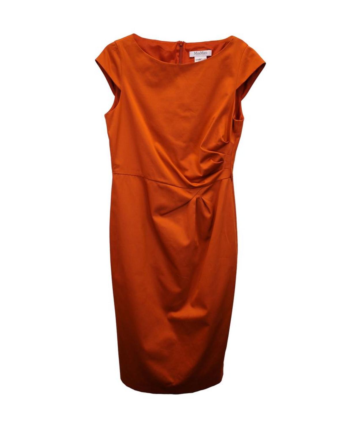 Max Mara Orange Cap Sleeve Belted Dress in Orange Cotton