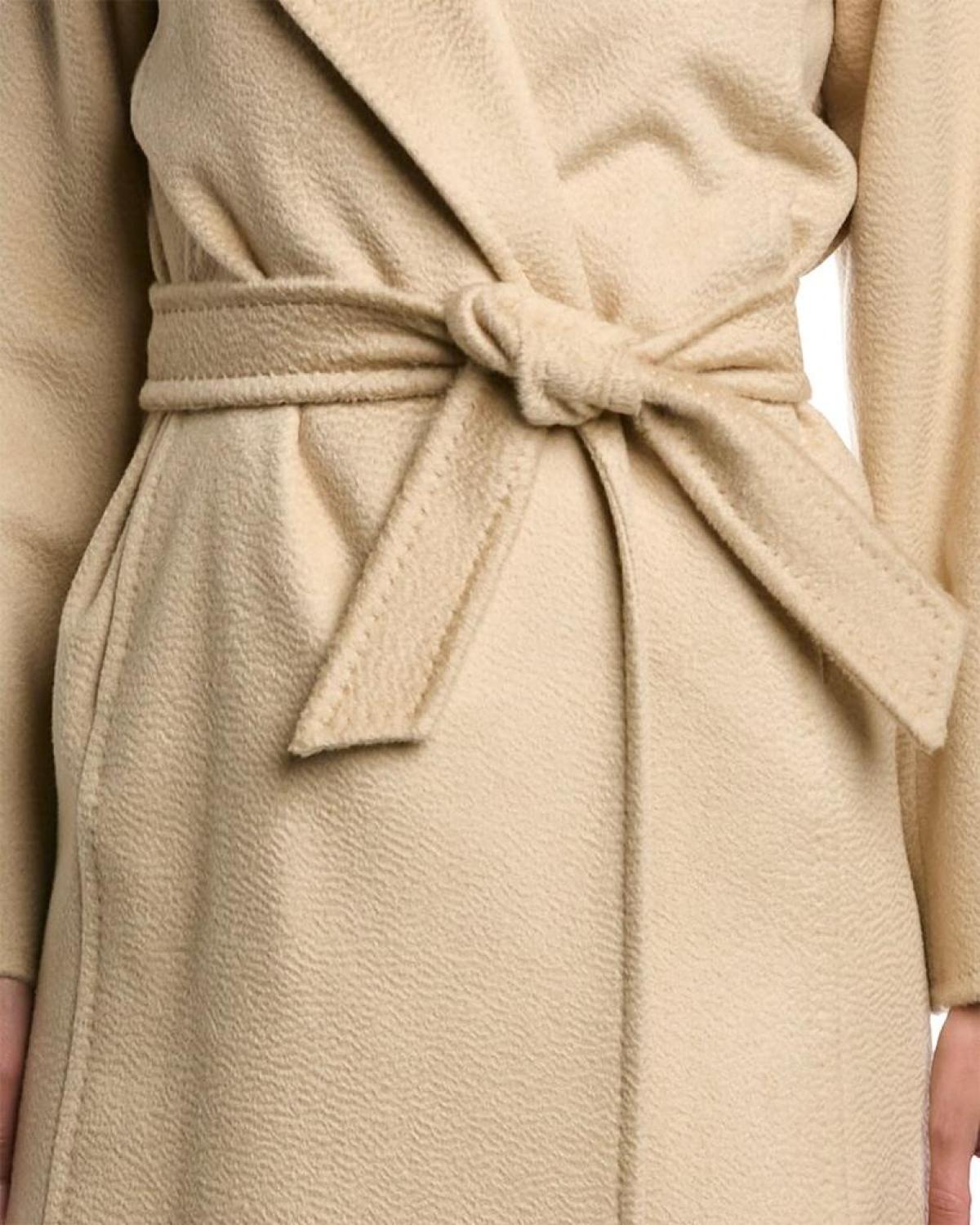 Introducing the Max Mara Soldato Coat, a timeless piece that combines elegance with Italian charm. Crafted from luxurious camel fabric, this beige coat features a spread collar and a flattering self-tie waist sash, accentuating your silhouette with sophistication. With its medium weight, this coat offers the perfect balance between warmth and comfort. The single-button closure adds a touch of class, while the dual front pockets provide functionality without compromising style. Measuring approximately 45 inches from shoulder to hem, this coat falls gracefully on your body, allowing for versatile styling options. It is designed for women who appreciate feminine and sophisticated pieces that make a lasting impression. The high-quality construction ensures durability, making it a valuable addition to your wardrobe that can be enjoyed for years to come.The Max Mara Soldato Coat is proudly made in Italy, reflecting the brand's commitment to superior craftsmanship. The coat is made from 100% camel fabric, known for its exquisite texture and natural insulation properties. The lining, made from 100% viscose, ensures a comfortable wear and adds to the overall luxurious feel. To preserve its pristine condition, this coat should be dry cleaned only. This helps maintain the shape and integrity of the garment, ensuring that it remains as beautiful as the day you first wore it. Elevate your winter outerwear collection with the Max Mara Soldato Coat. Order now and experience the exquisite combination of Italian design and timeless elegance that Max Mara is renowned for.