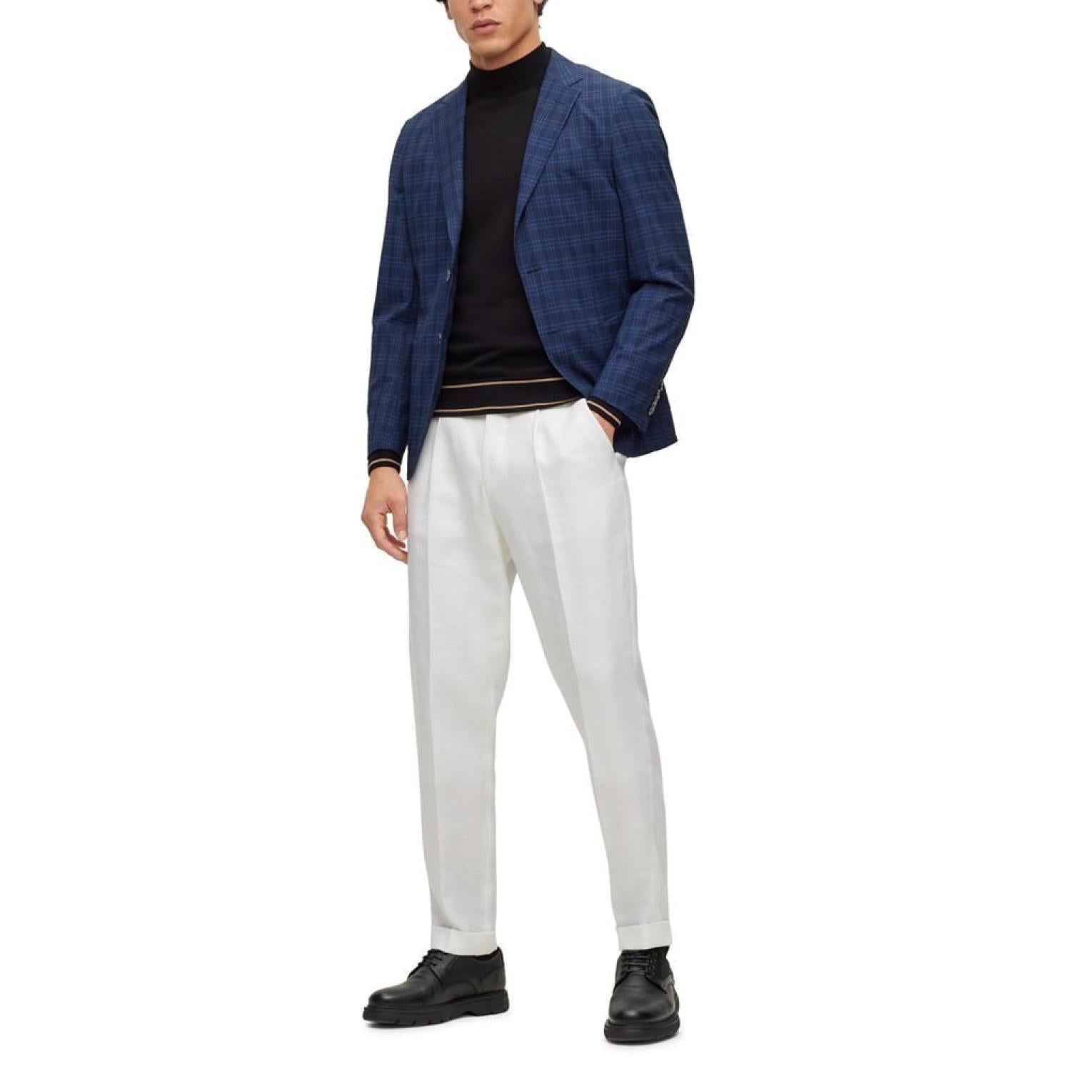 • A checked jacket by BOSS menswear, cut to a slim fit in stretch fabric containing a touch of silk and stretch. This item is part of the BOSS tailored collection, signifying the very highest standards in design and craftsmanship.