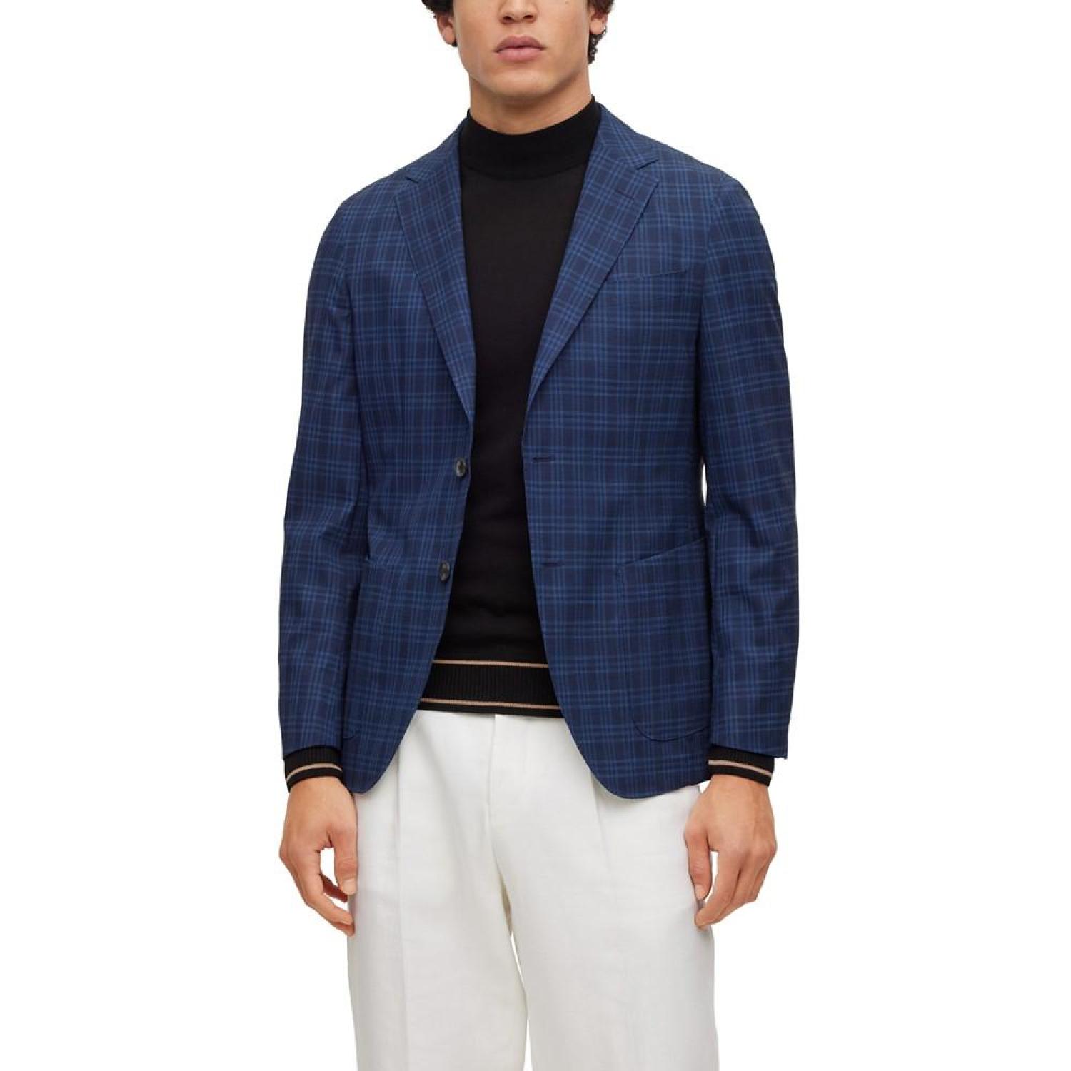 A checked jacket by BOSS menswear, cut to a slim fit in stretch fabric containing a touch of silk and stretch. This item is part of the BOSS tailored collection, signifying the very highest standards in design and craftsmanship.