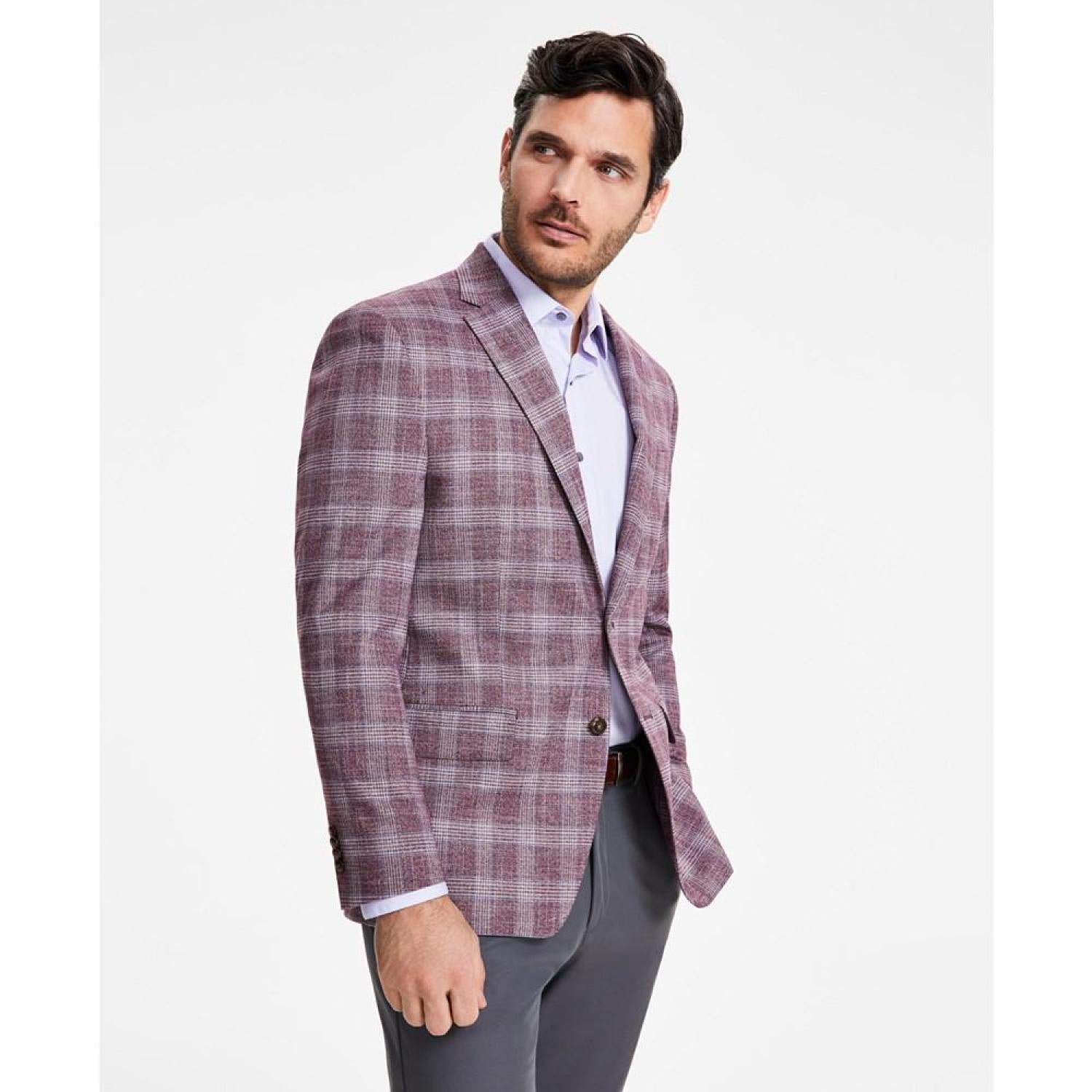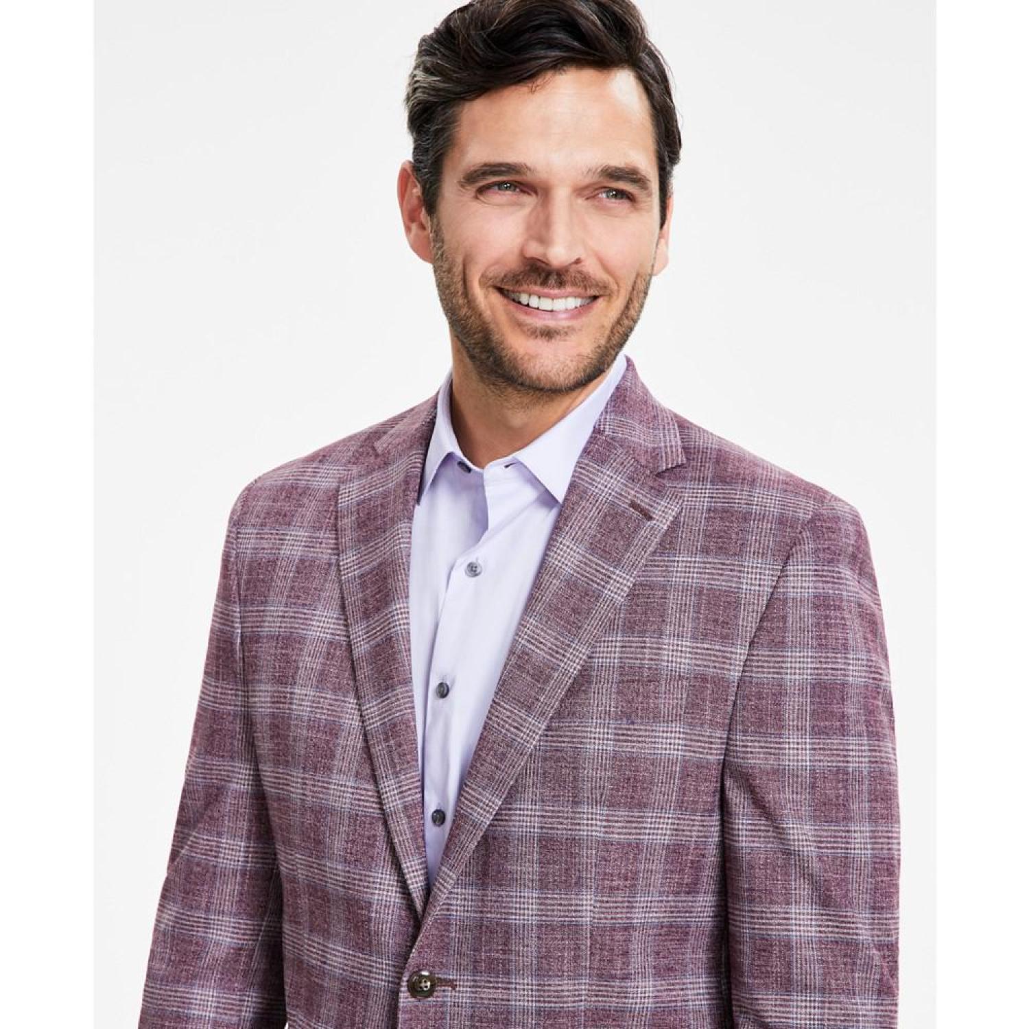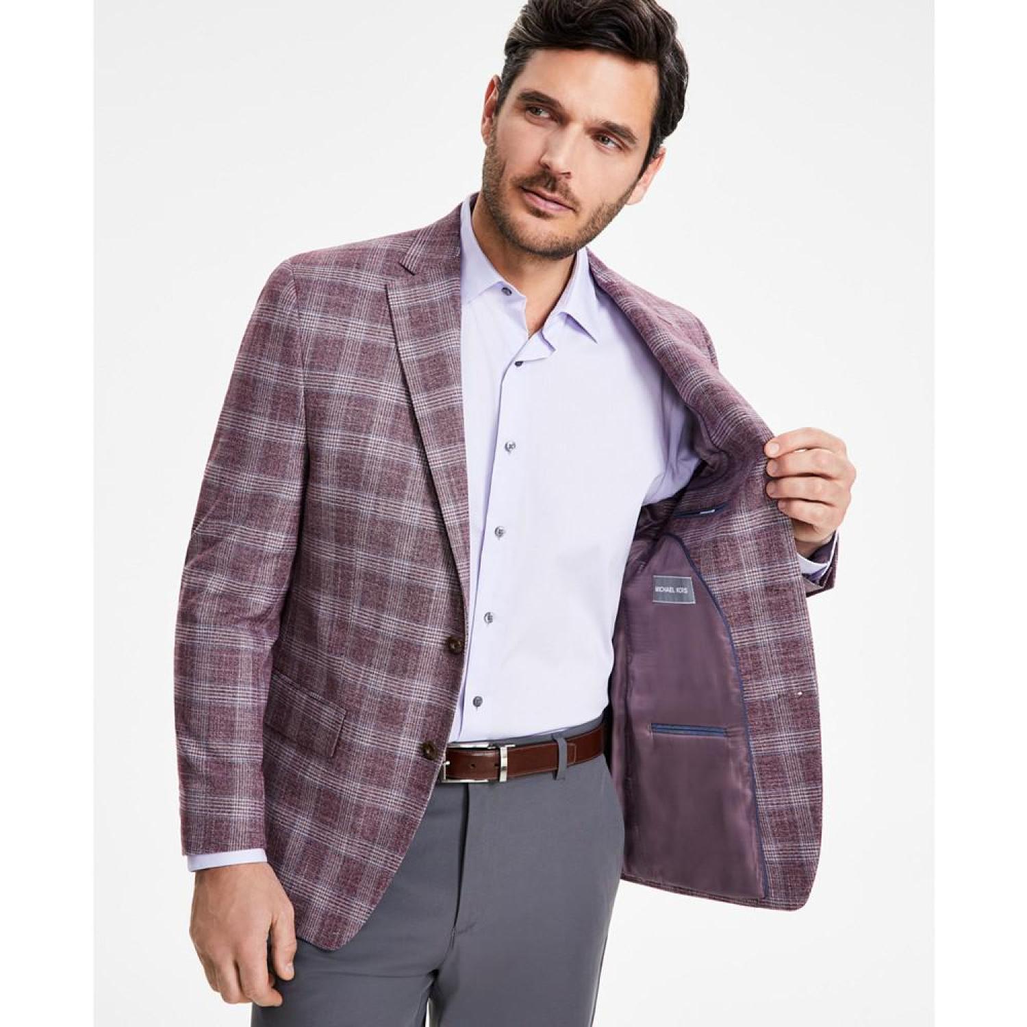 Show up to your next event with confidence and timeless, inspired design when you finish off your outfit with this classic-fit berry plaid sport coat from Michael Kors. Classic fit Notched lapels Button closure Two buttons Kissing buttons at the cuff Flap pockets Welt pocket at chest Center vent Fully lined Shell: Polyester, viscose, spandex; lining: polyester, viscose Dry clean Imported