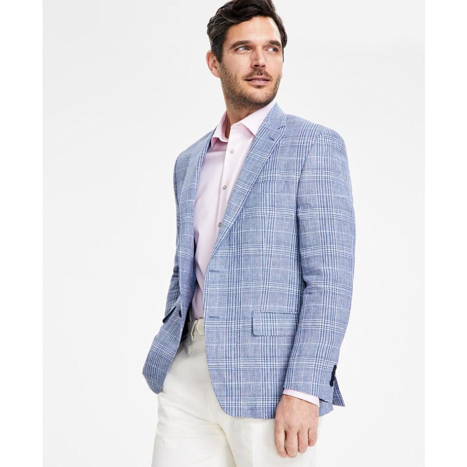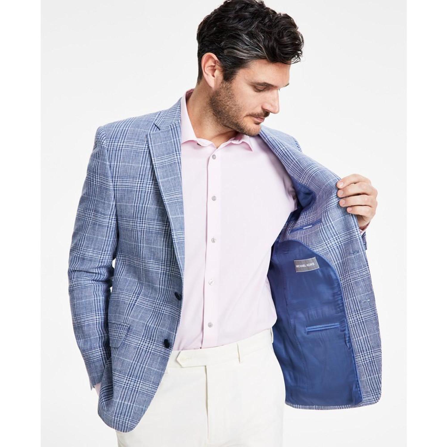Show up to your next event with confidence and timeless, inspired design when you finish off your outfit with this classic-fit linen plaid sport coat from Michael Kors. Classic fit Notched lapels Button closure Two buttons Kissing buttons at the cuff Flap pockets Welt pocket at chest Side vent Fully lined Shell: linen; lining: polyester Dry clean Imported