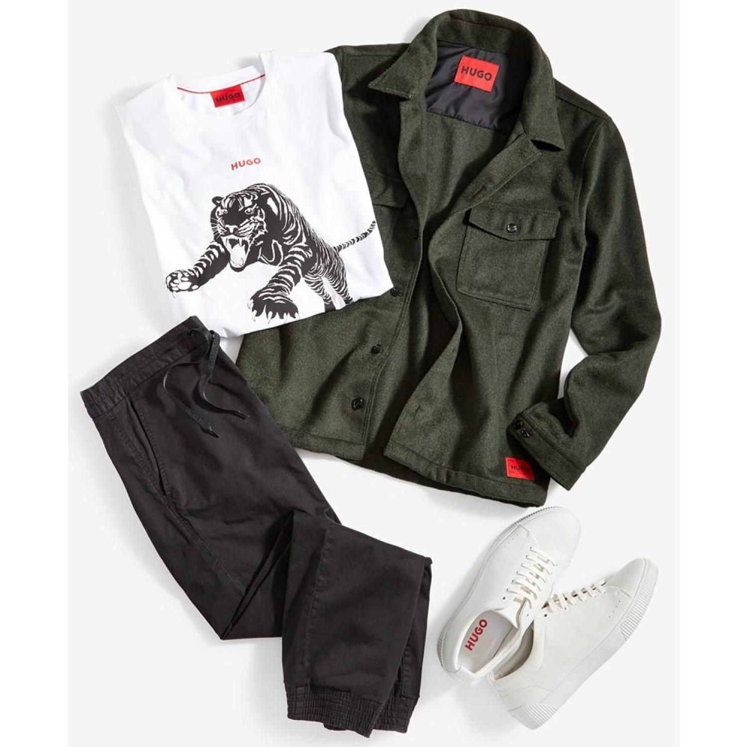 • Layer on some style with an oversized shirt jacket from HUGO by Hugo Boss.