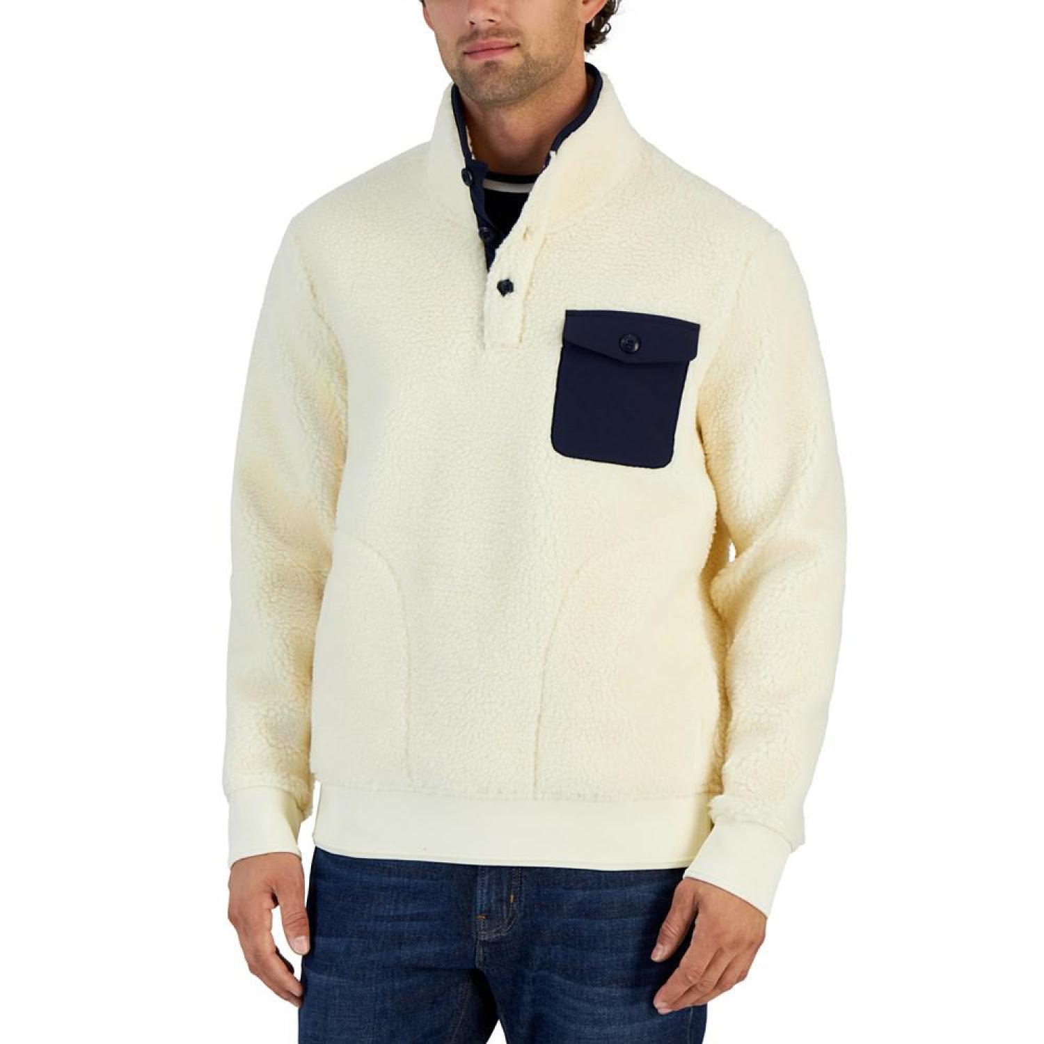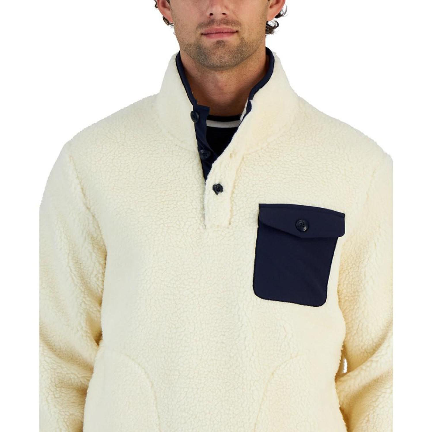 • As cozy and comfy as it looks, this fleece pullover jacket from Michael Kors features a three-button placket and a contrast pocket at the chest for added appeal.