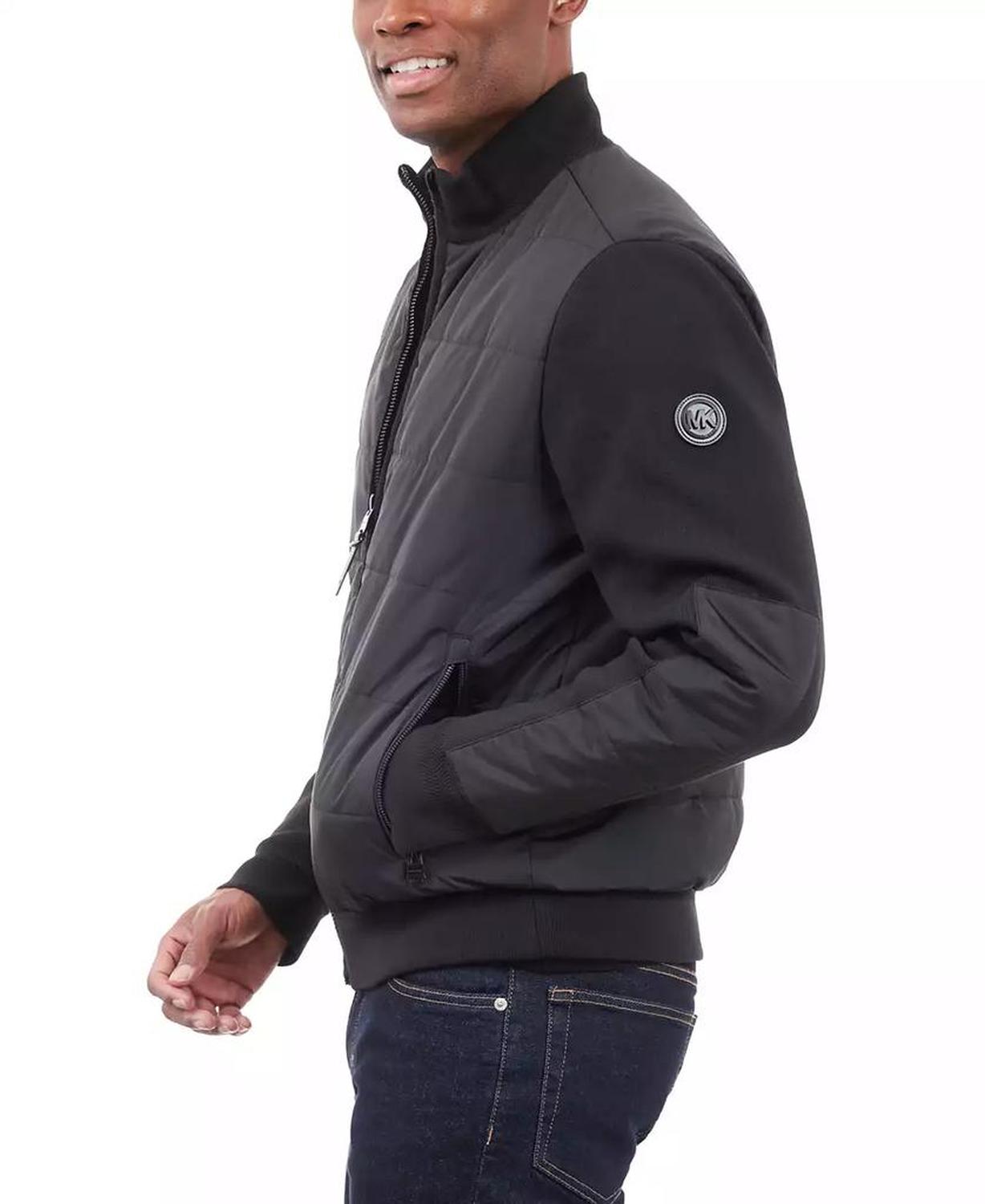 Men's Mixed-Media Knit-Sleeve Puffer Jacket