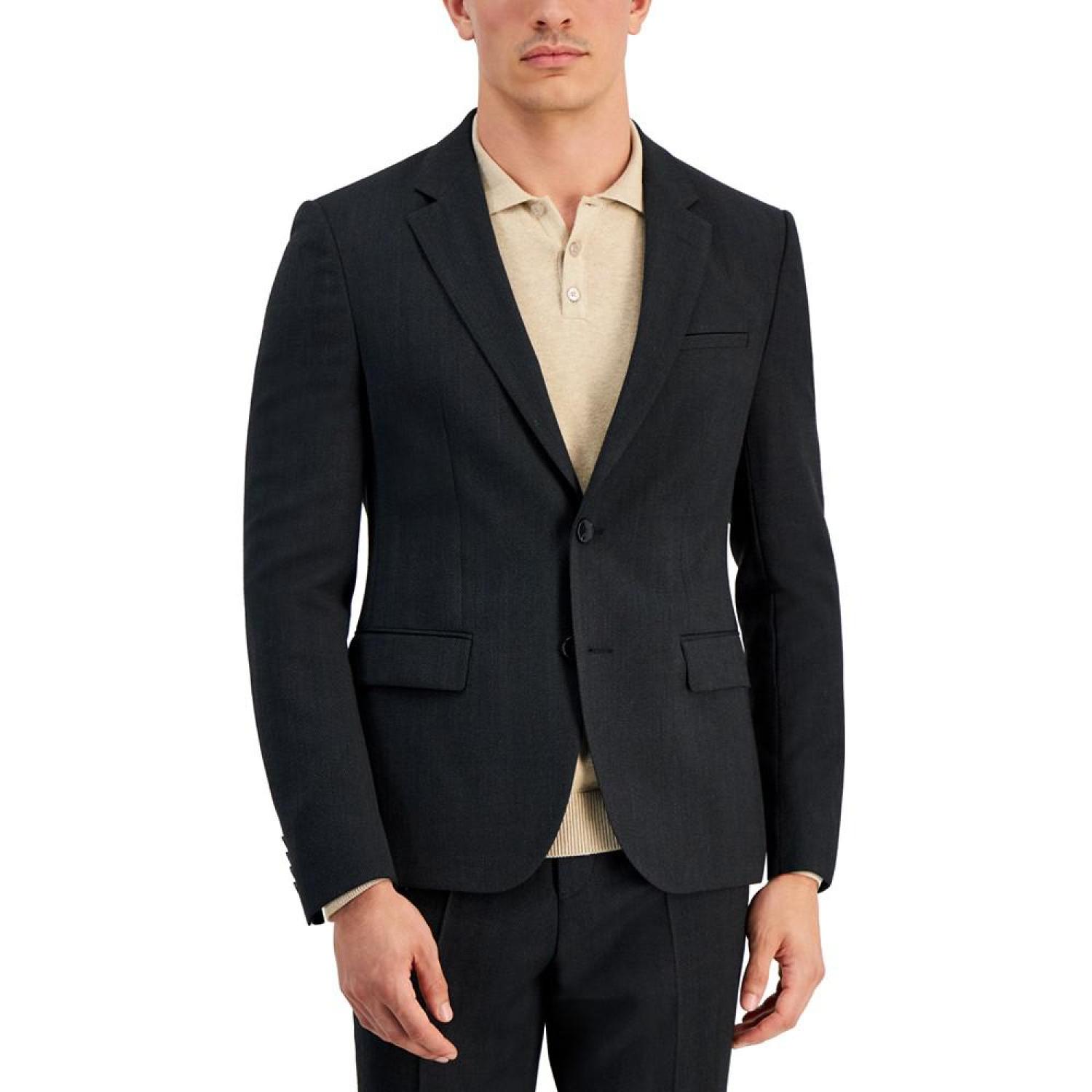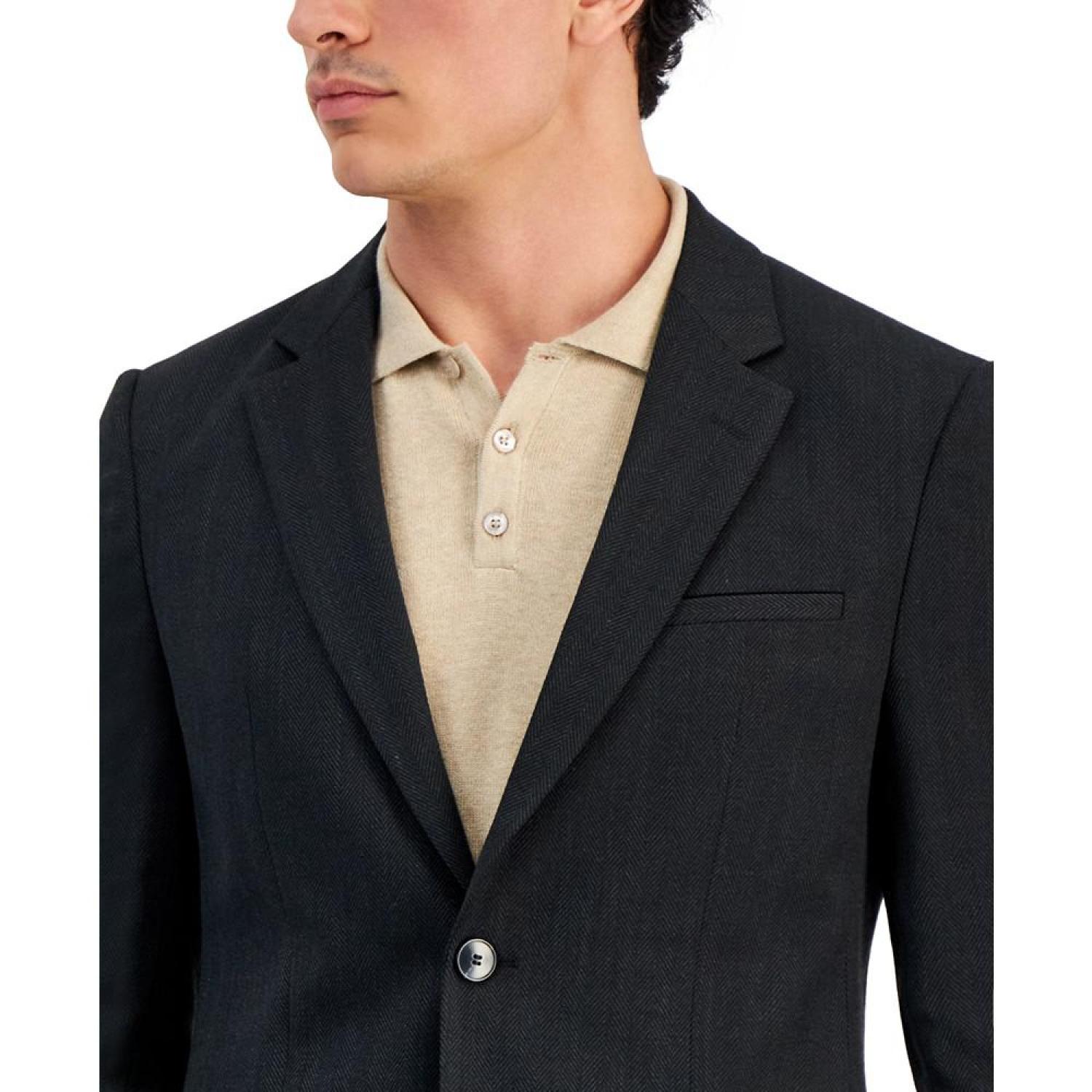 Men's Modern-Fit Charcoal Herringbone Suit Jacket