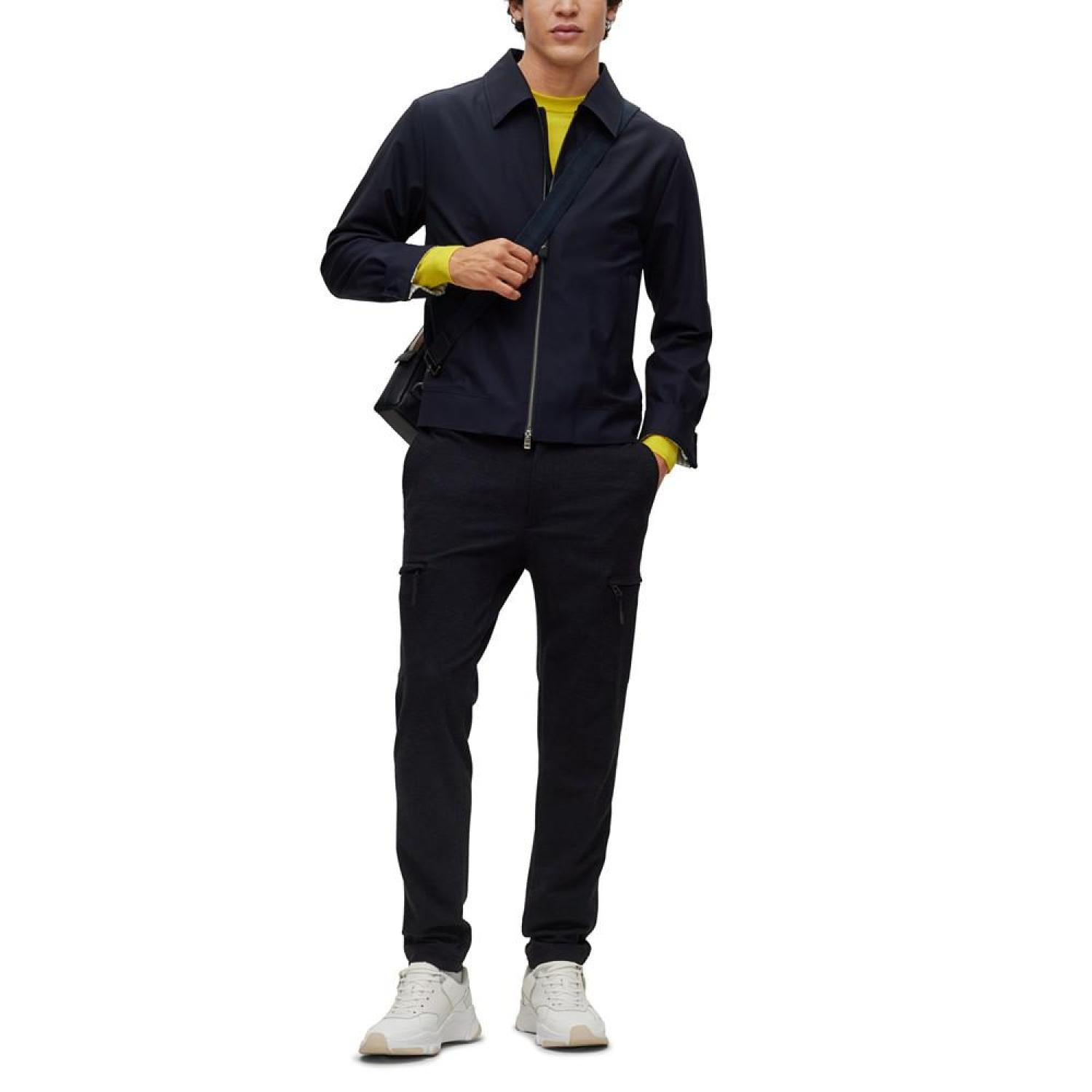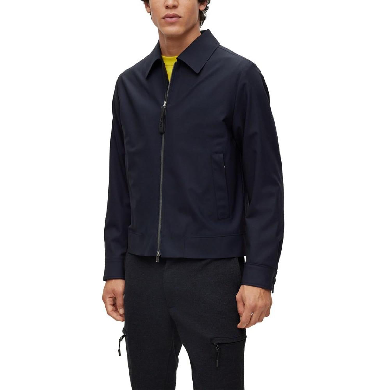 • A slim-fitting jacket in performance-stretch wool with a two-way front zip by BOSS menswear.
