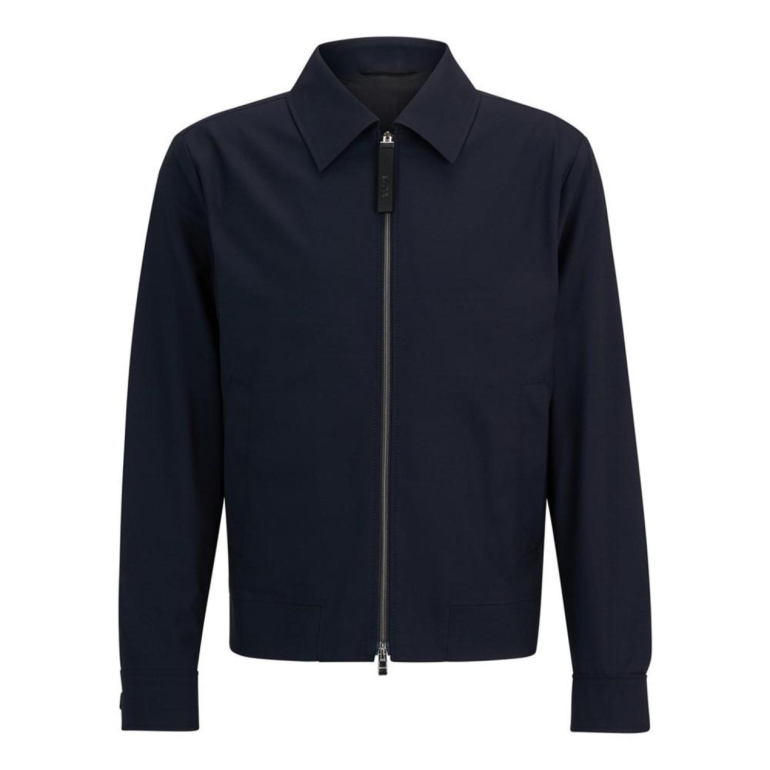 A slim-fitting jacket in performance-stretch wool with a two-way front zip by BOSS menswear.