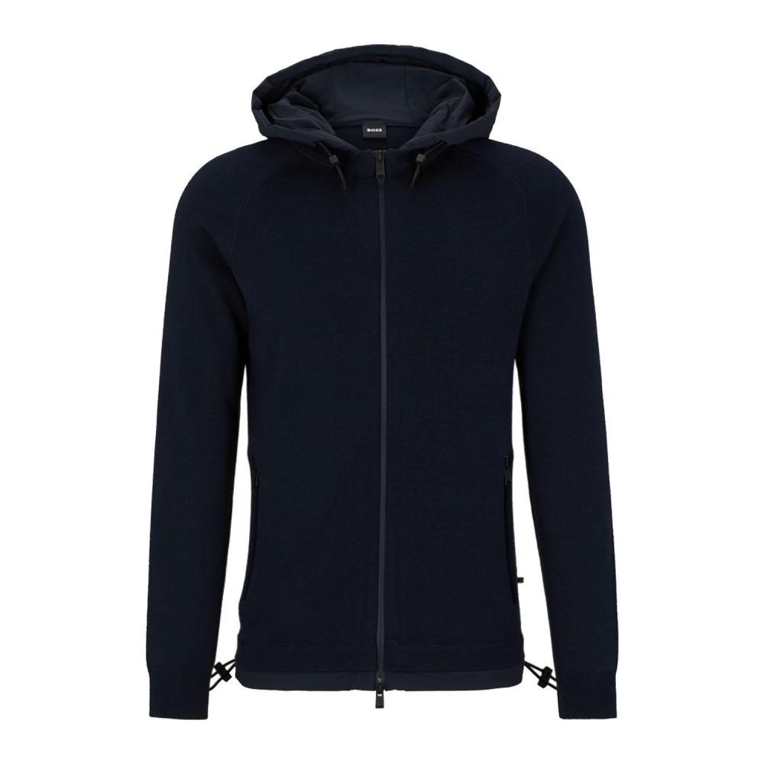 • A regular-fit zip-up jacket blended with wool, trimmed with tonal fabric accents and topped with a padded hood by BOSS Menswear.