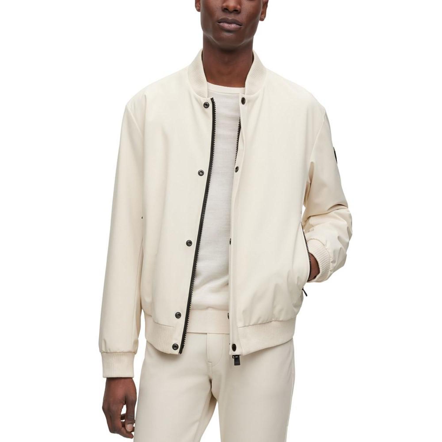 • A regular-fit softshell jacket by BOSS menswear, crafted in stretch fabric with a water-repellent finish and featuring a covered placket and college collar.