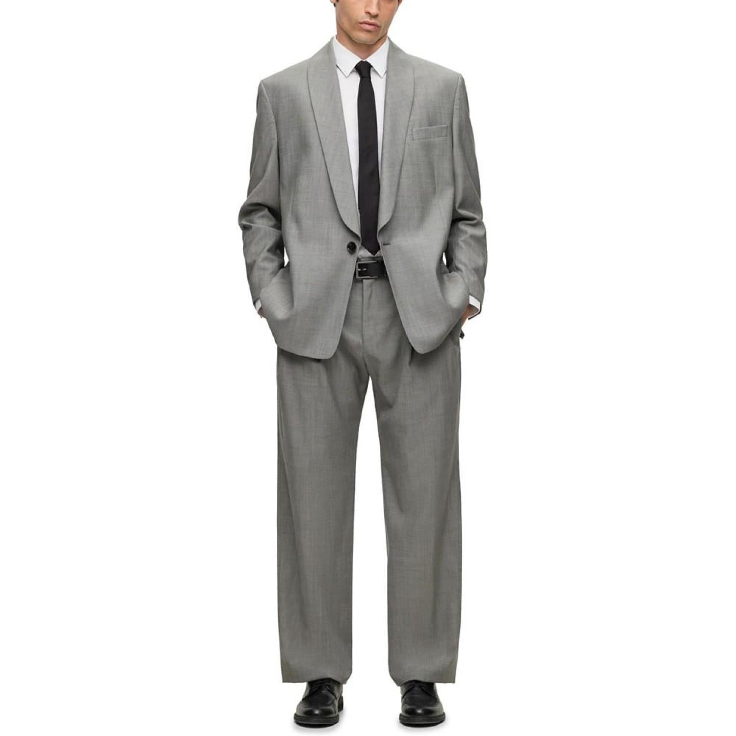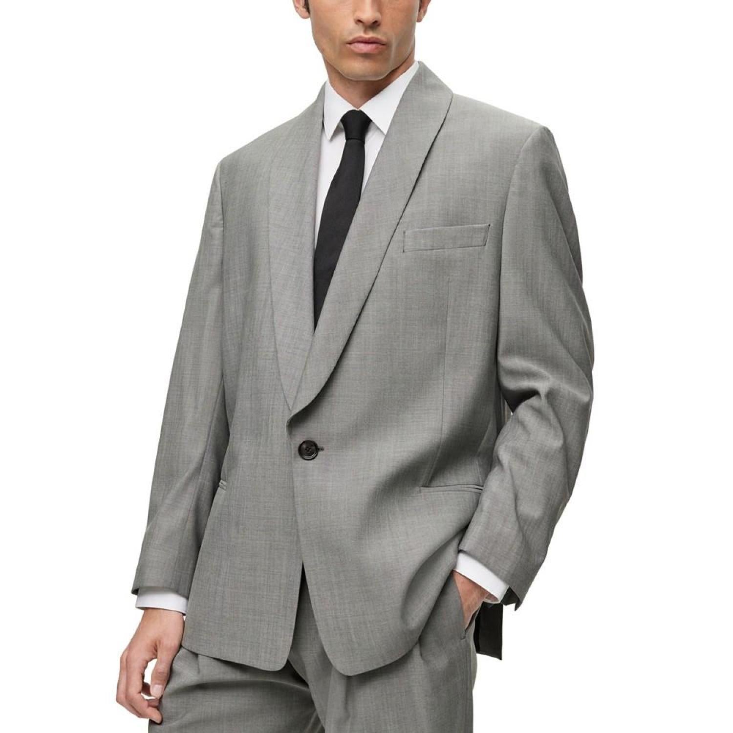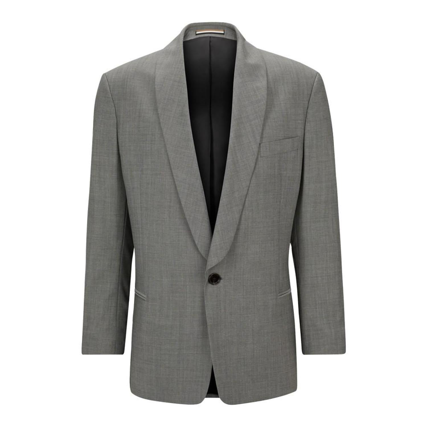 A single-button jacket cut to a relaxed fit in mohair-look wool with shawl lapels by BOSS menswear. The model is a size 32R and is 6'2" tall with a, 38" chest, 29" waist and 36" hips Relaxed fit Number of buttons - 1 Wool Machine Washable Imported