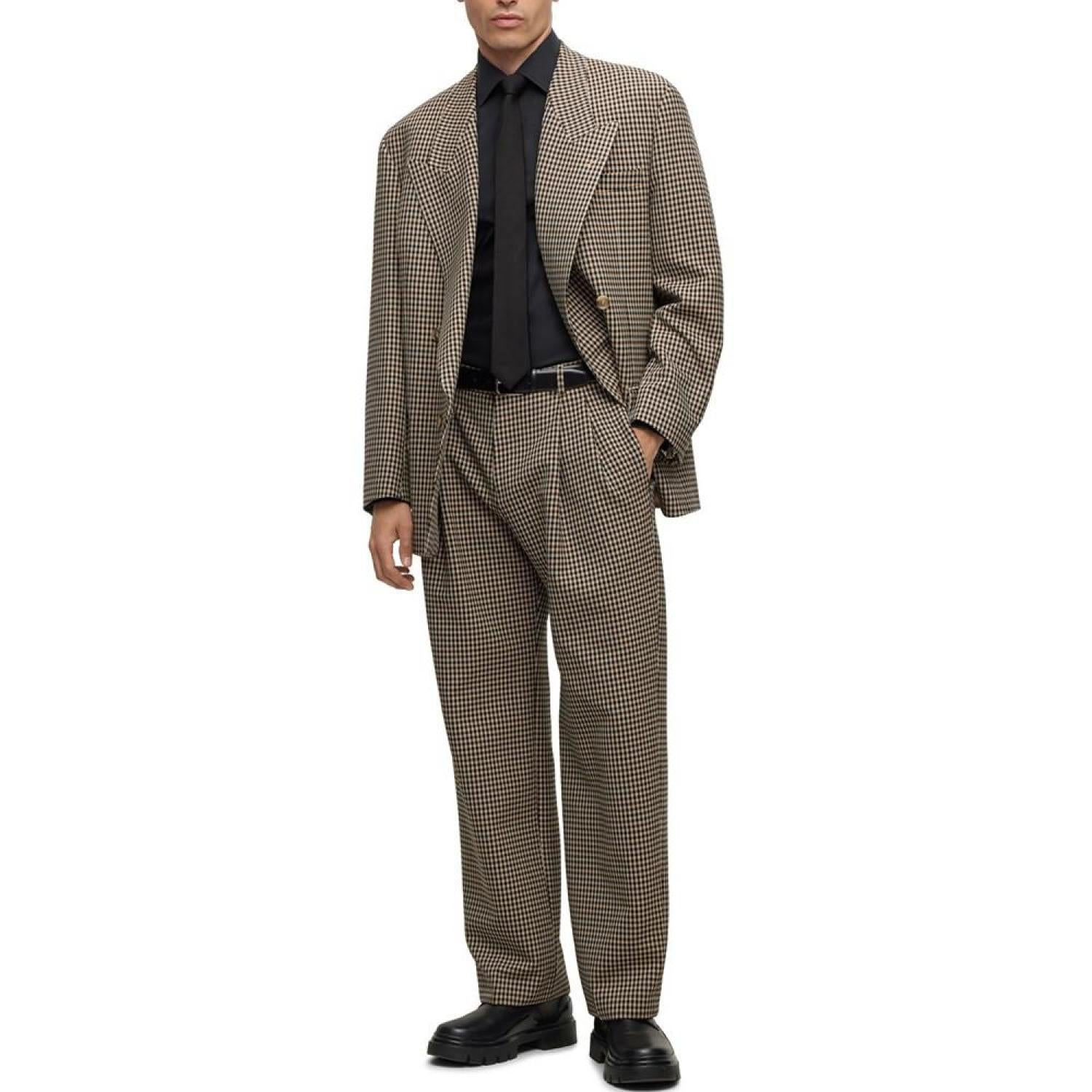 A double-breasted jacket cut to a relaxed fit in stretch cloth with a check pattern by BOSS Menswear.