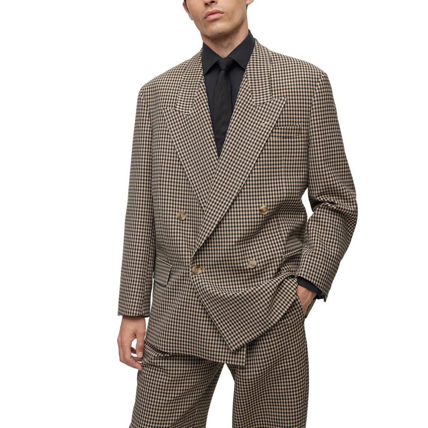 • A double-breasted jacket cut to a relaxed fit in stretch cloth with a check pattern by BOSS Menswear.