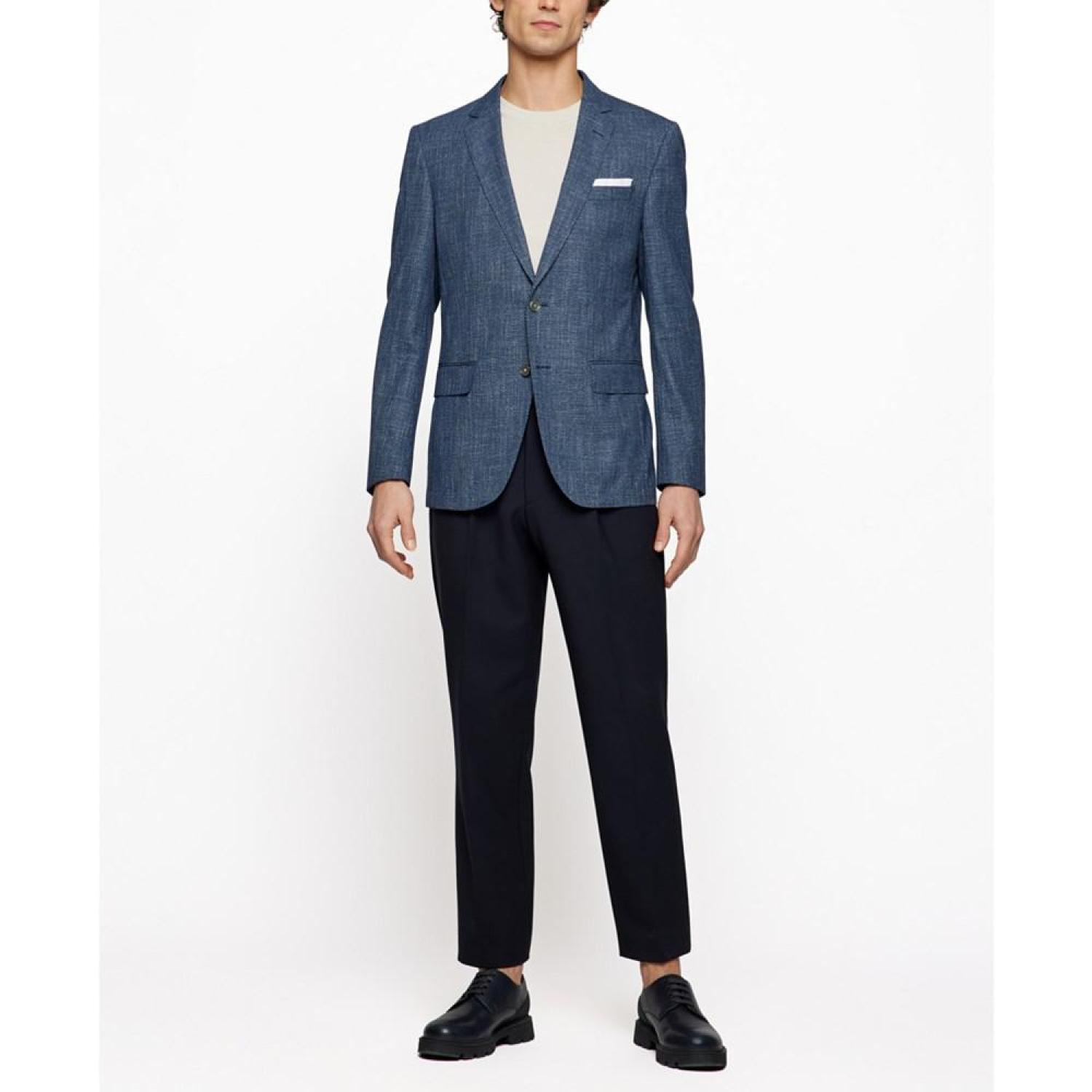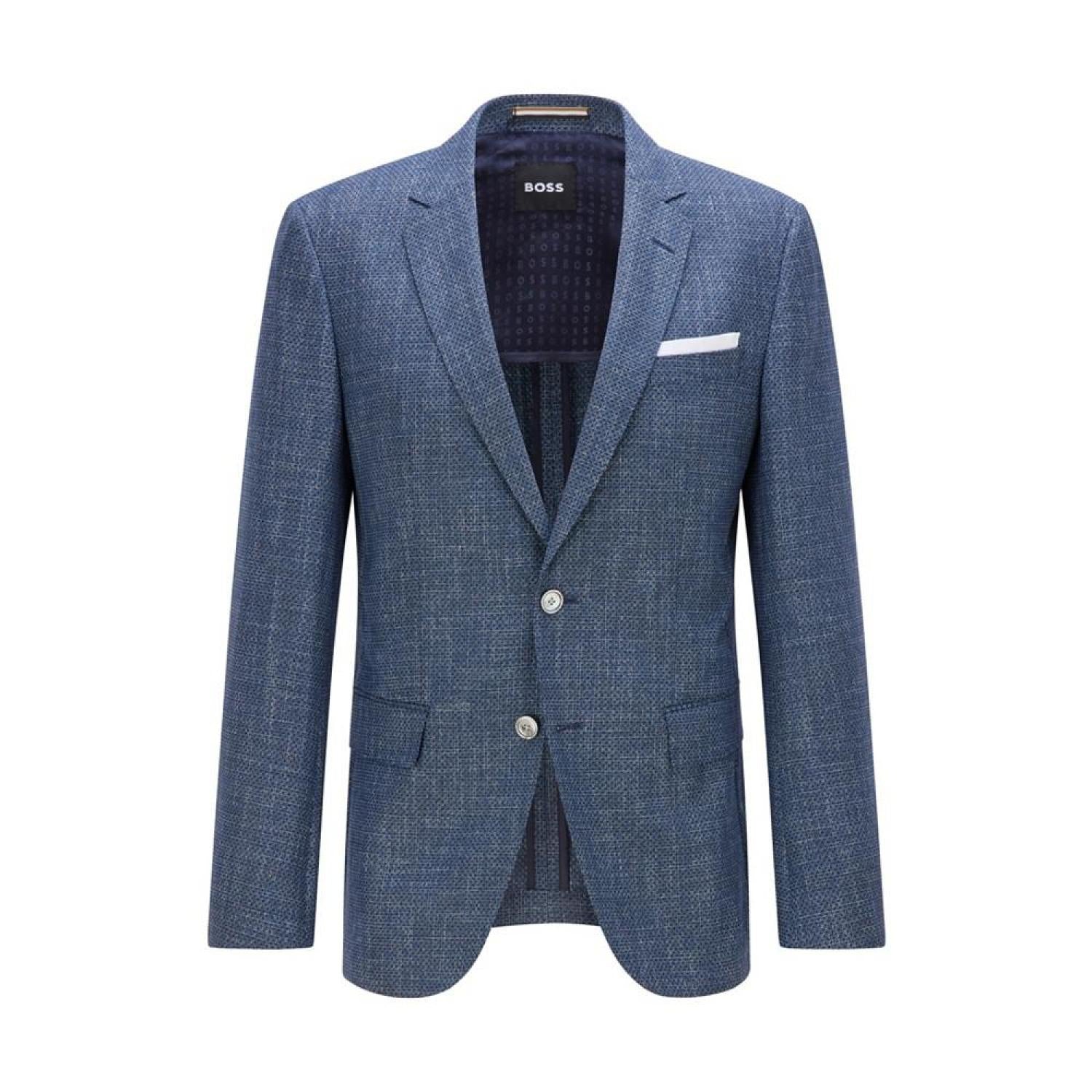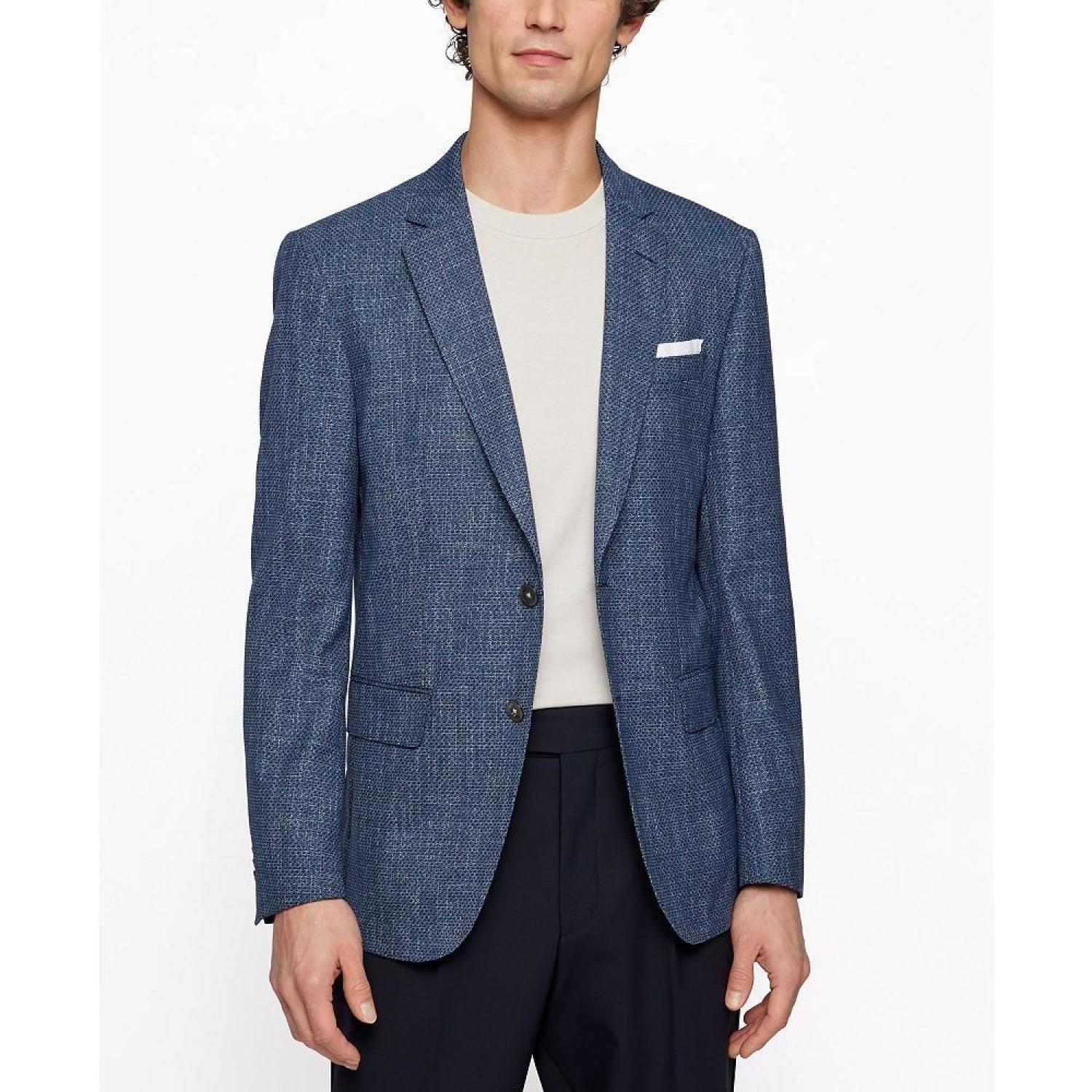 • A single-breasted jacket with a contrasting pocket square by BOSS menswear. Featuring partial lining detailed with BOSS logos, this impeccably crafted jacket is designed in a wool blend and woven with a rich pattern. This piece is tailored to a defined fit for modern lines.