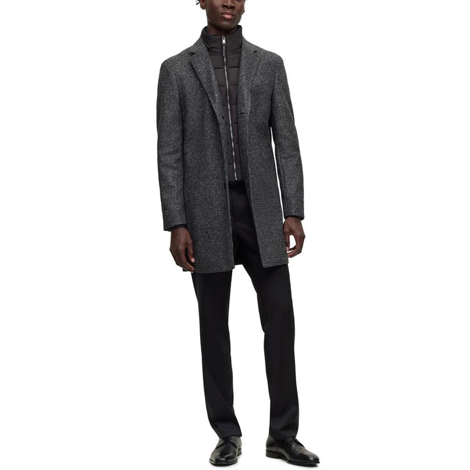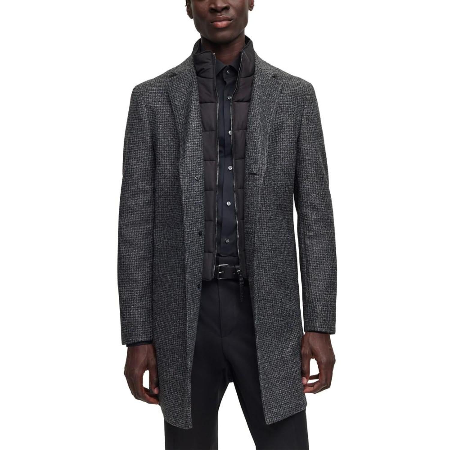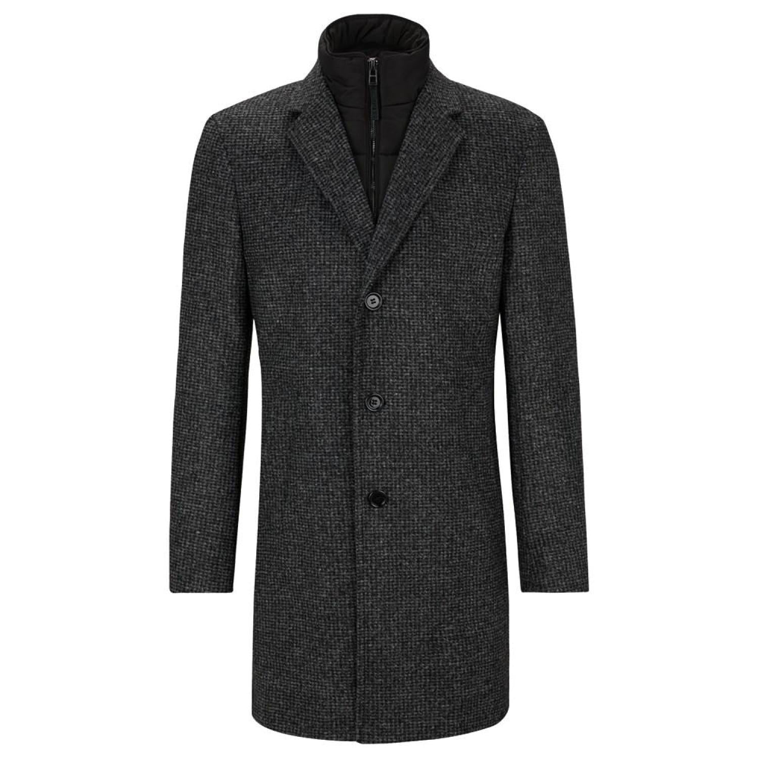 A patterned coat cut to a slim fit, blended with wool and designed with a zip-up inner by BOSS menswear.