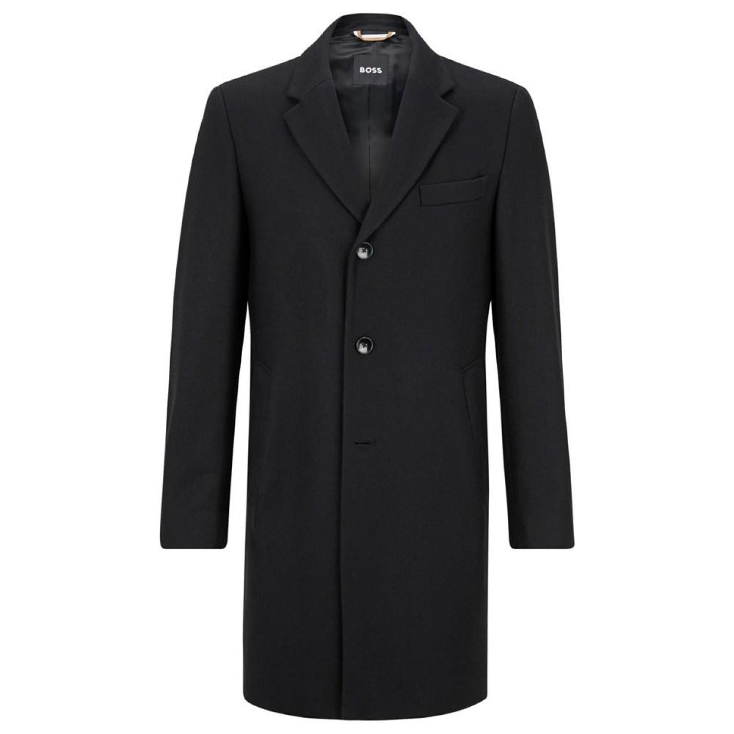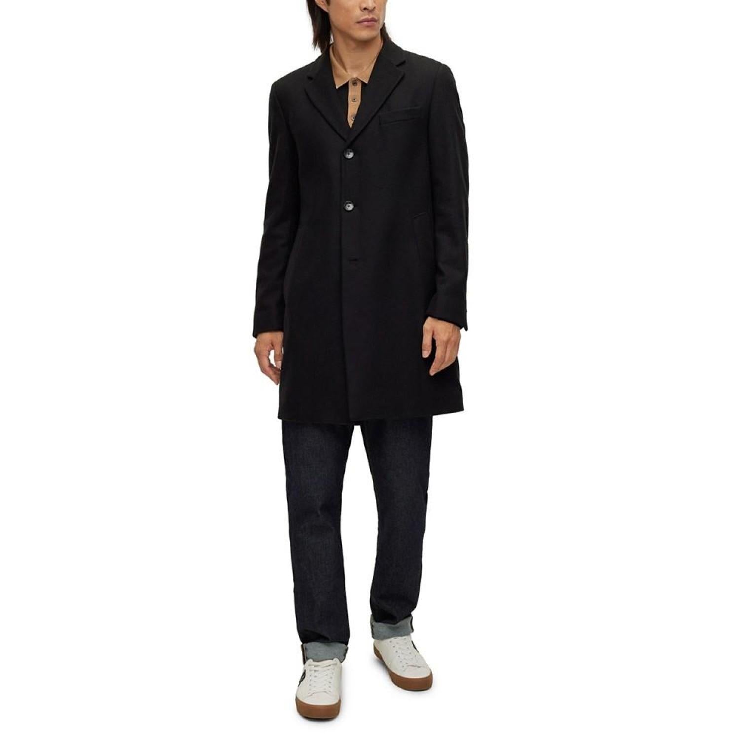 • A versatile coat by BOSS Menswear. Featuring welt pockets and notch lapels, this button-up coat is crafted in solid-weave fabric rich in virgin wool for a distinctive look. The slim fit delivers clean and contemporary lines.