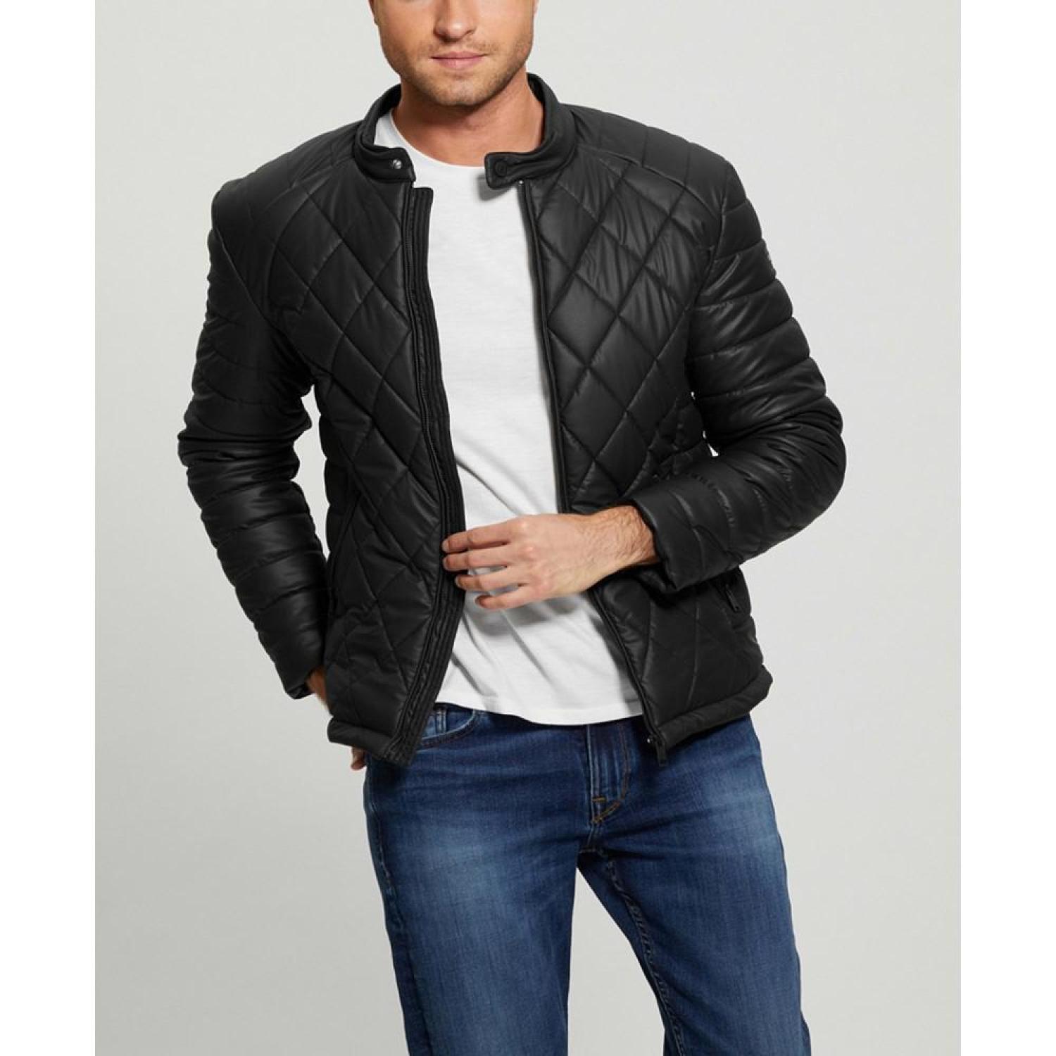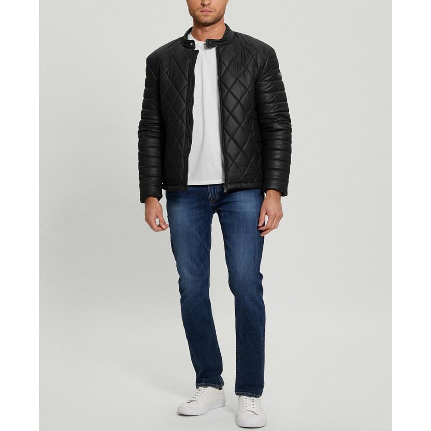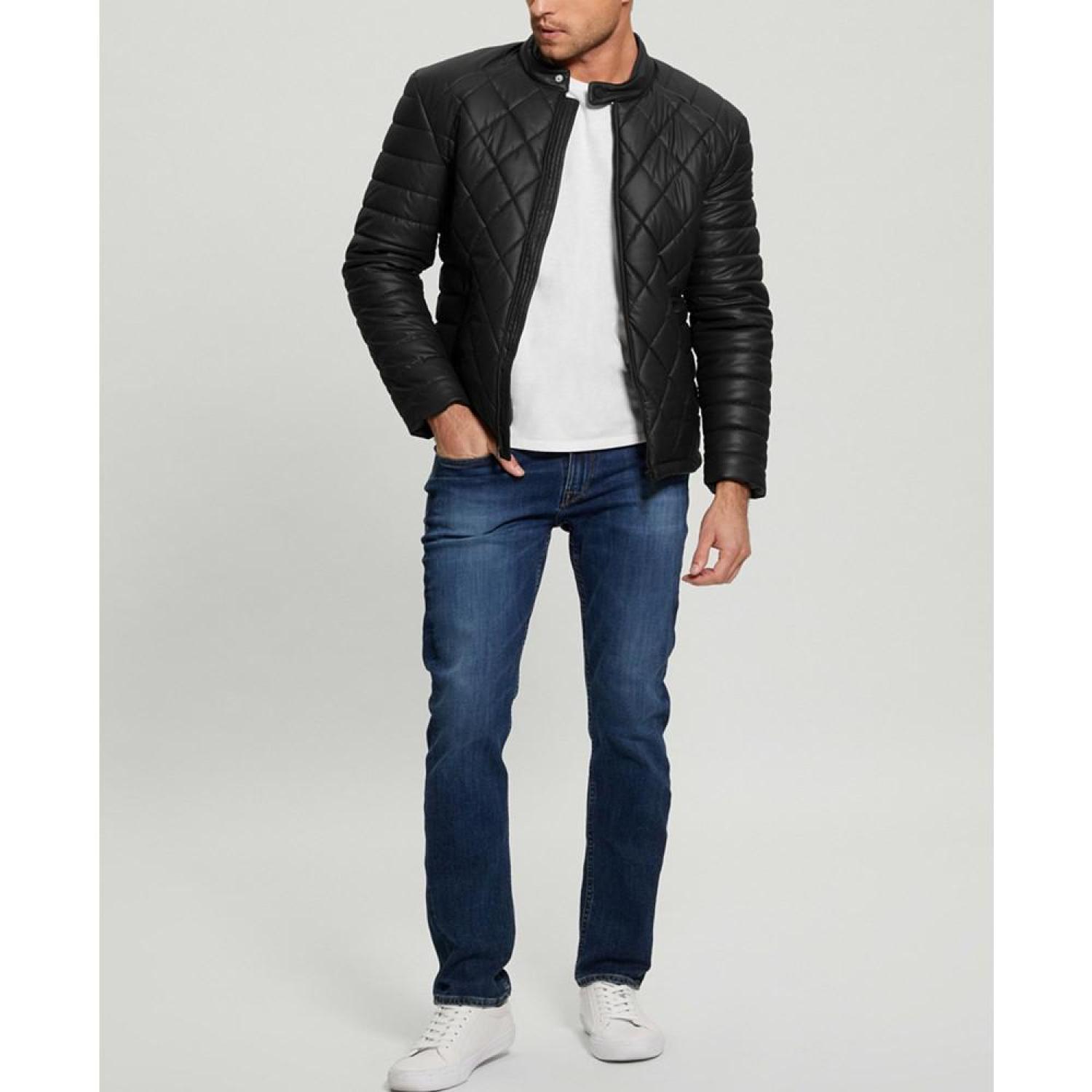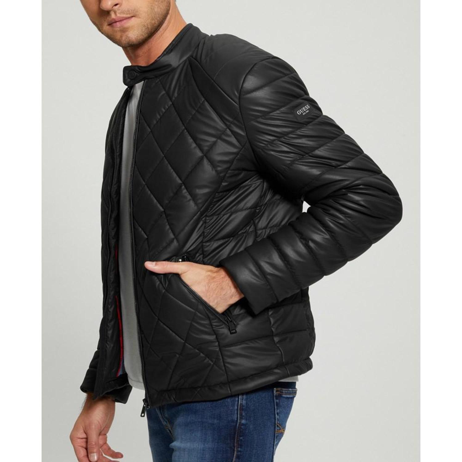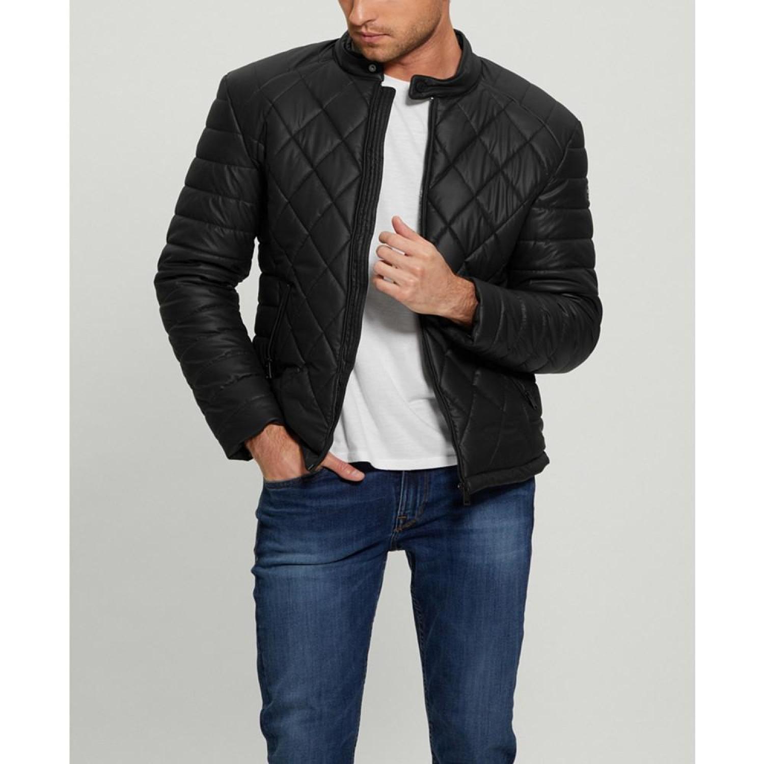 This faux leather jacket features a biker collar and zip fastening. Faux leather Biker collar Slim fit Zip fastening Polyurethane Machine washable Imported