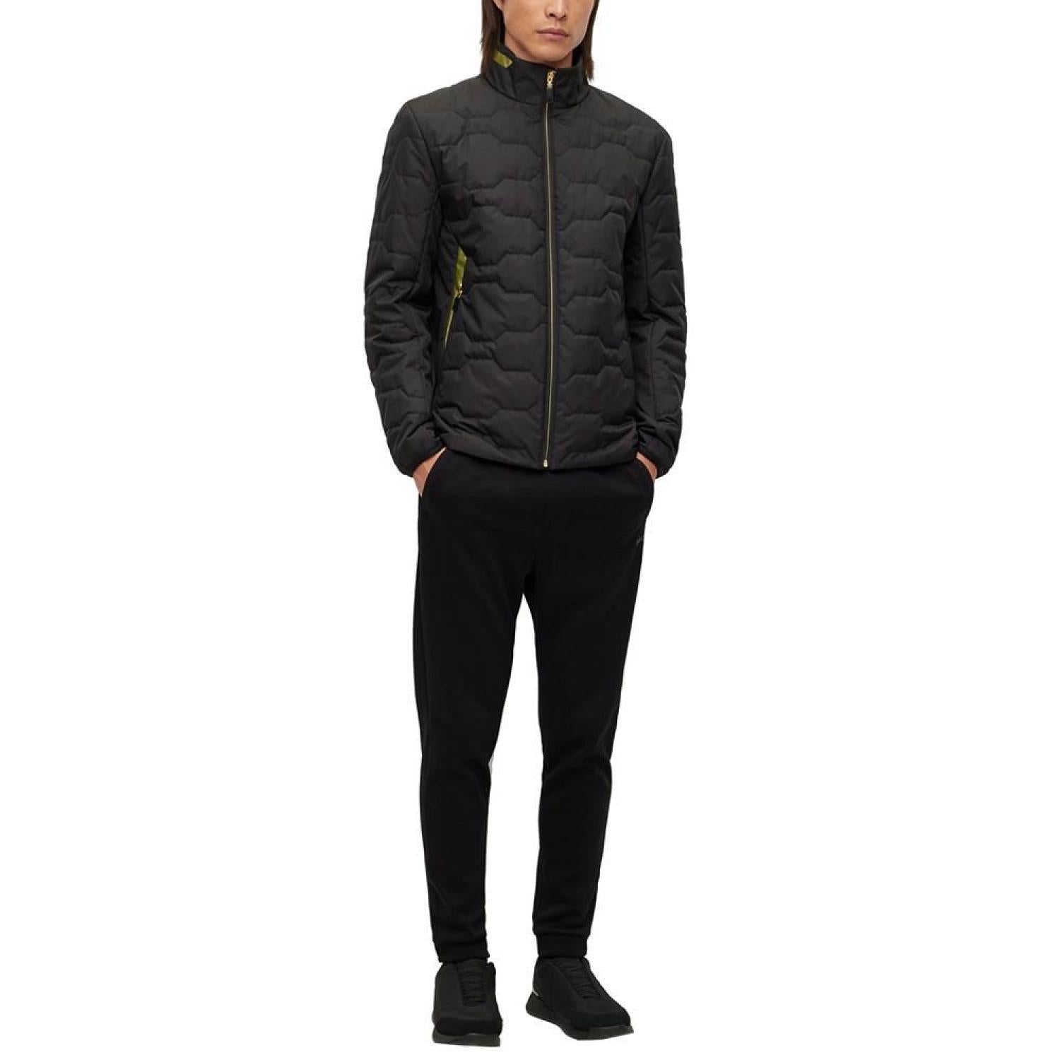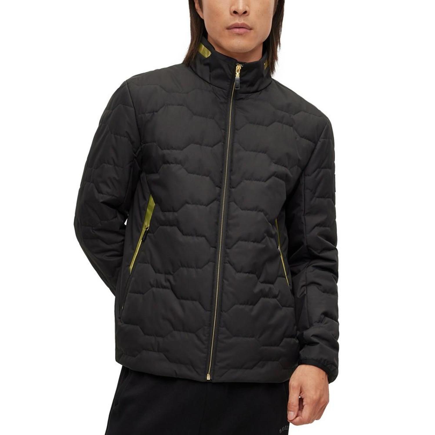 An advanced jacket filled with lightweight wadding by BOSS menswear. Featuring contrast accents and BOSS branding for signature appeal, this jacket is engineered with an integrated heating system and treated with a water-repellent finish. The model is a size 32R and is 6'2" tall with a, 38" chest, 29" waist and 36" hips Stand collar Fastening top- zip closure Pockets top- zip pockets Inside patch pockets Elasticized cuffs Polyester Machine Washable Imported