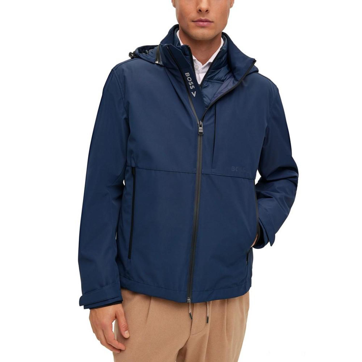• A jacket with a three-in-one design by BOSS Menswear. Complete with a removable zip-up inner with lightweight padding. A water-repellent finish, adjustable cuffs and a detachable hood complete this innovative piece.