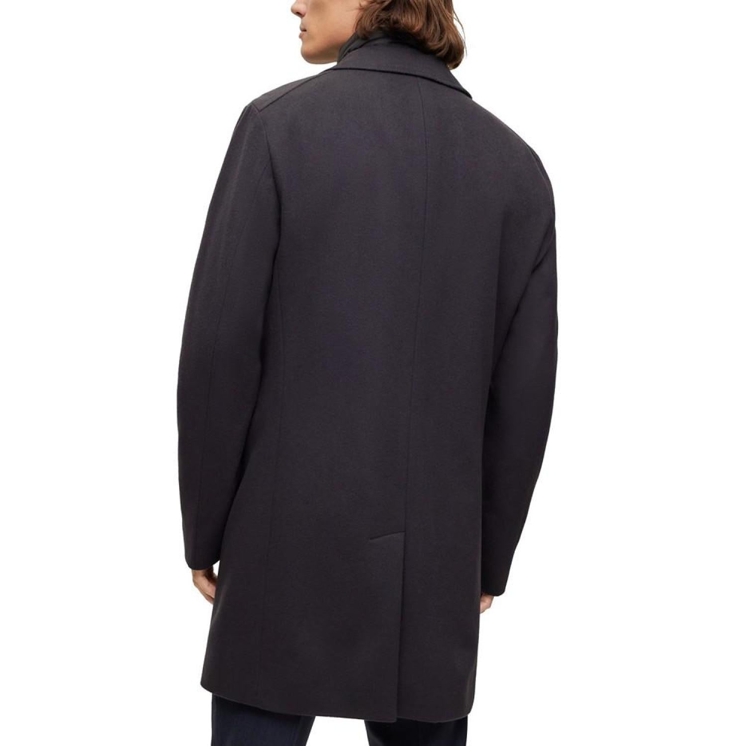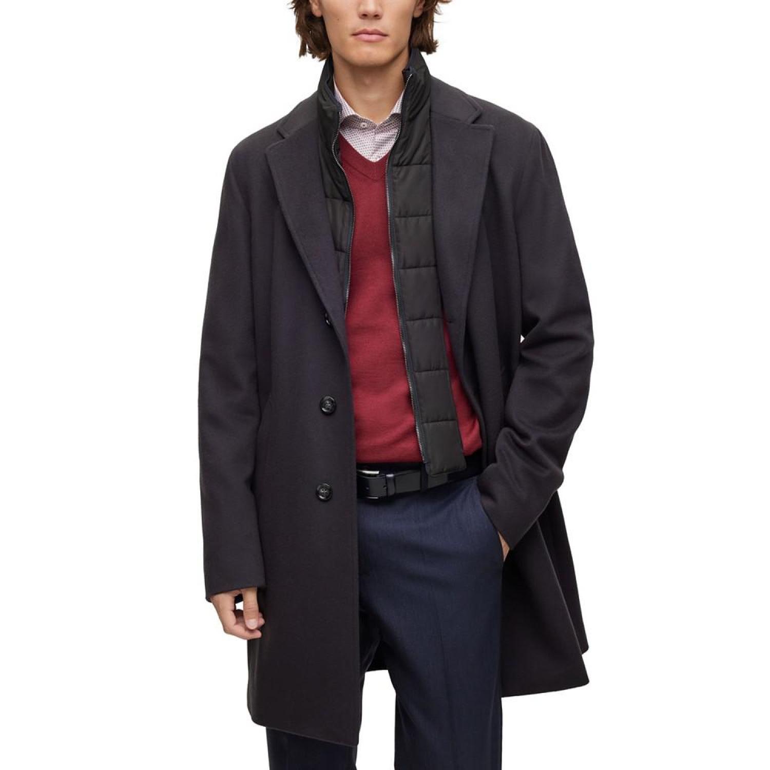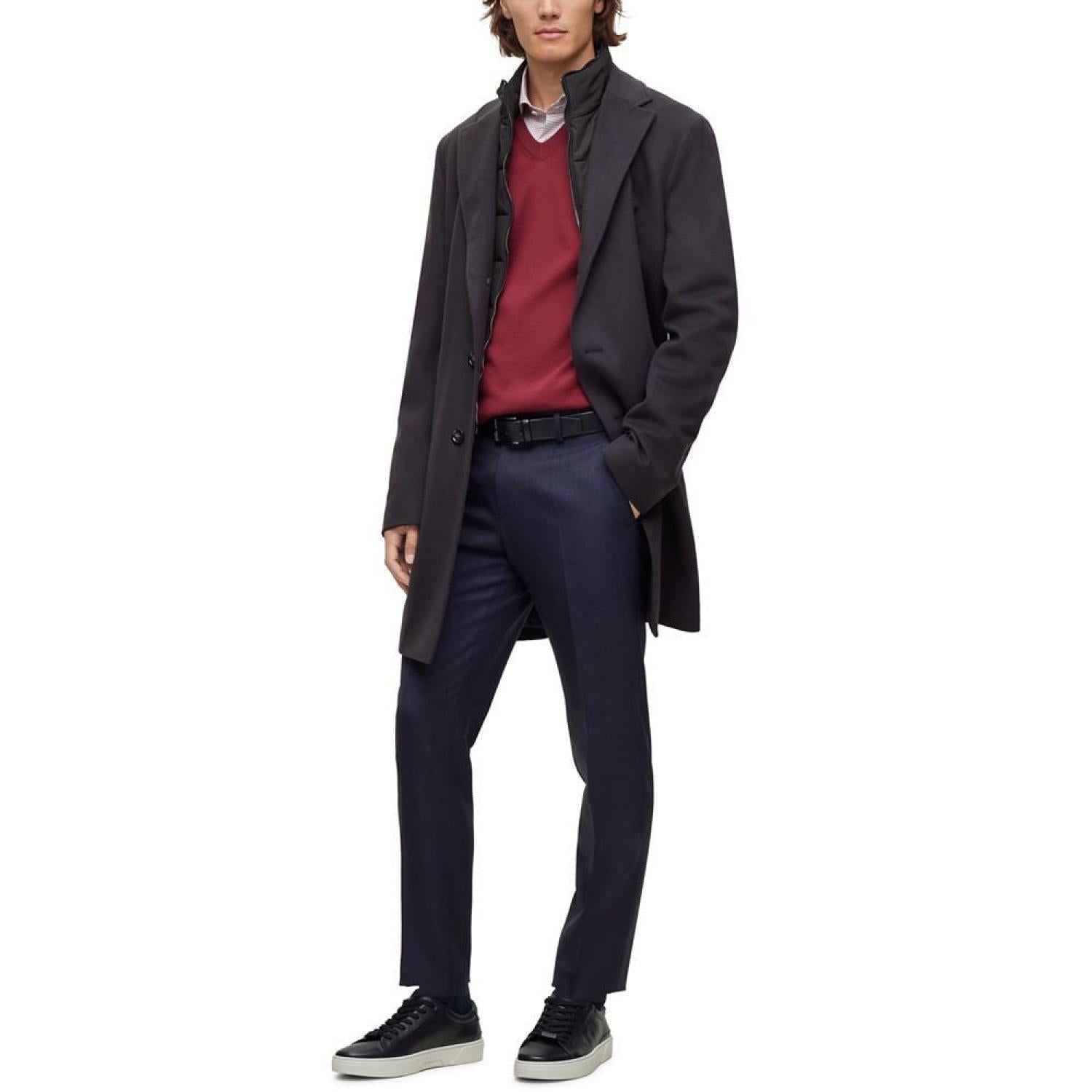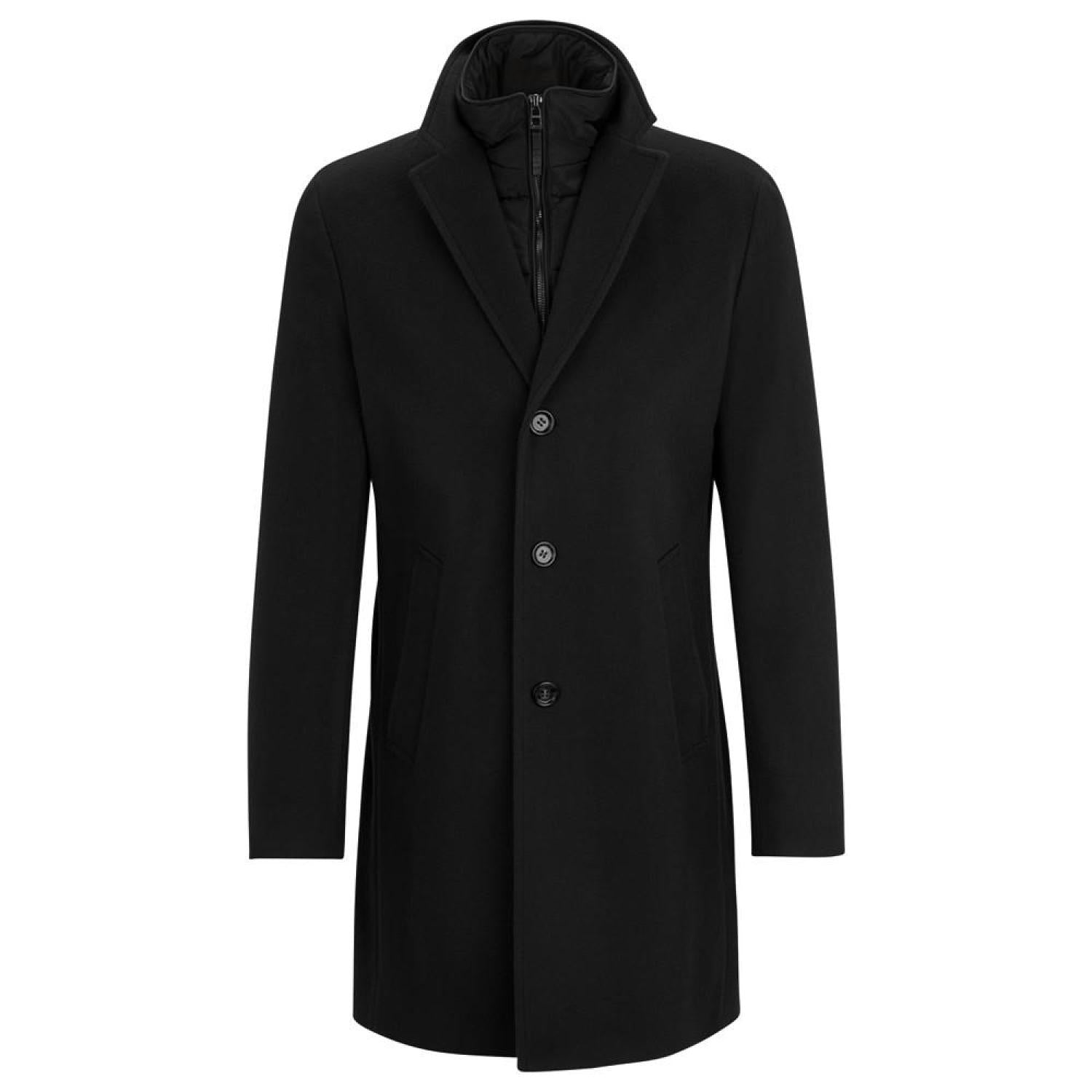A fully lined coat cut to a slim fit in wool-rich material with a zip-up waistcoat by BOSS menswear.