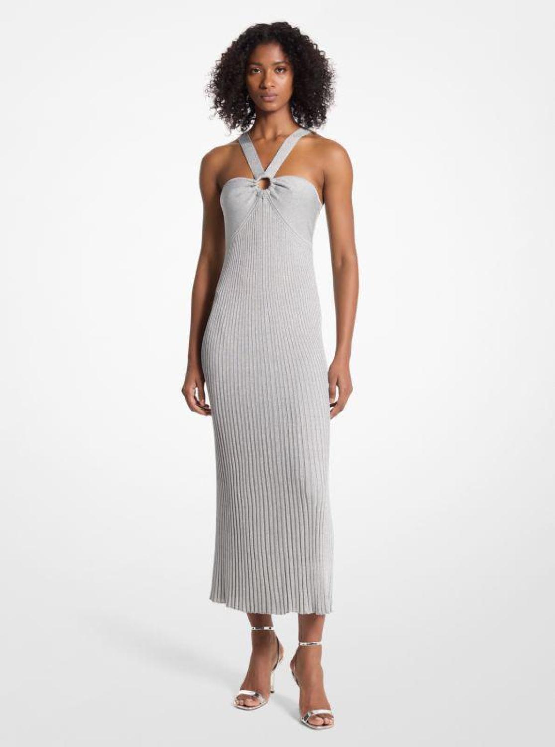Metallic Knit Ring Halter Dress