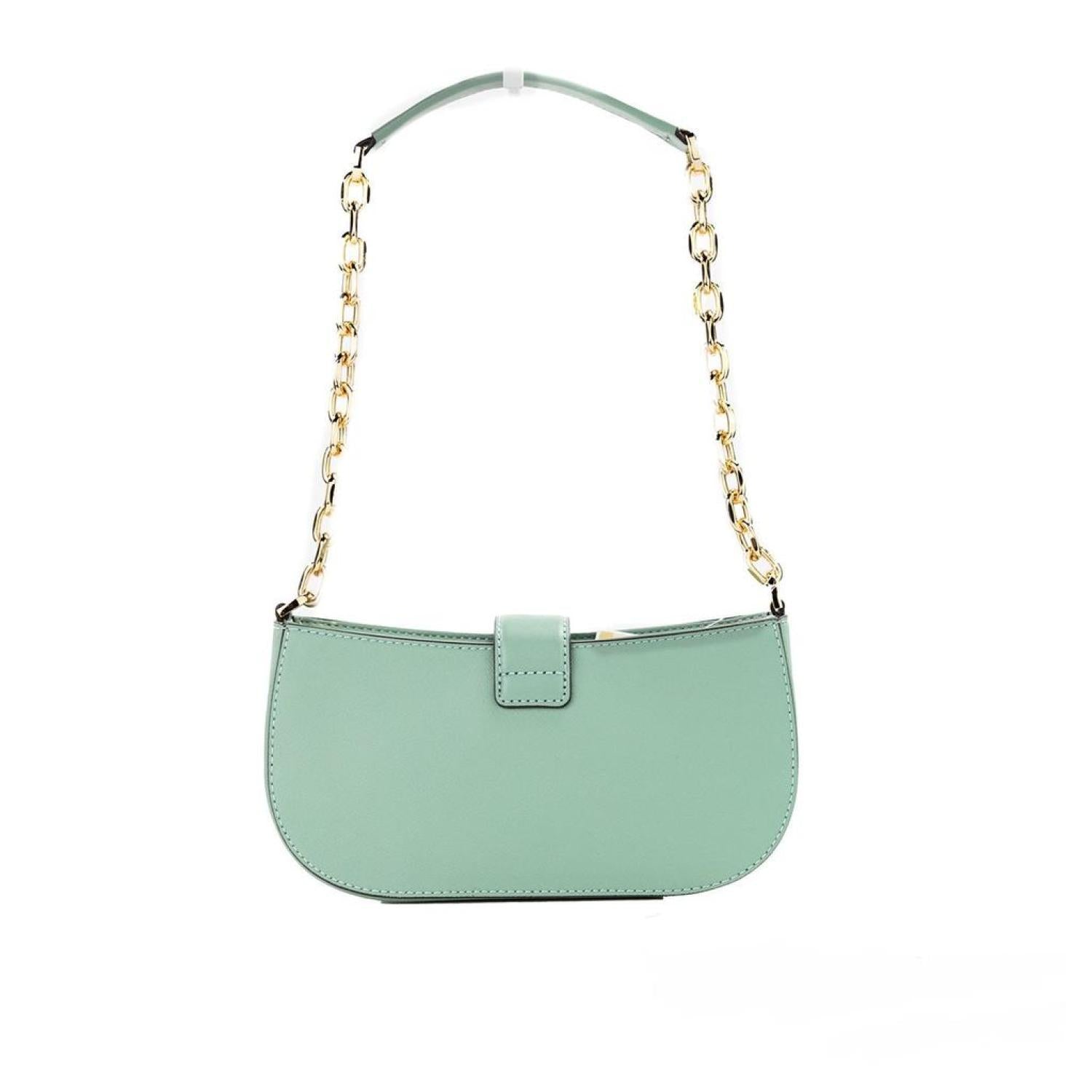 Style - Michael Kors Carmen Small Sea Green Pouchette Shoulder HandbagMaterial - Saffiano LeatherFeatures - 3 Inner Card Slots, Zip Closure, Chain and Leather Shoulder Strap, Jacquard LiningMeasures - 24.13 cm L x 12.7 cm H x 6.35 cm D