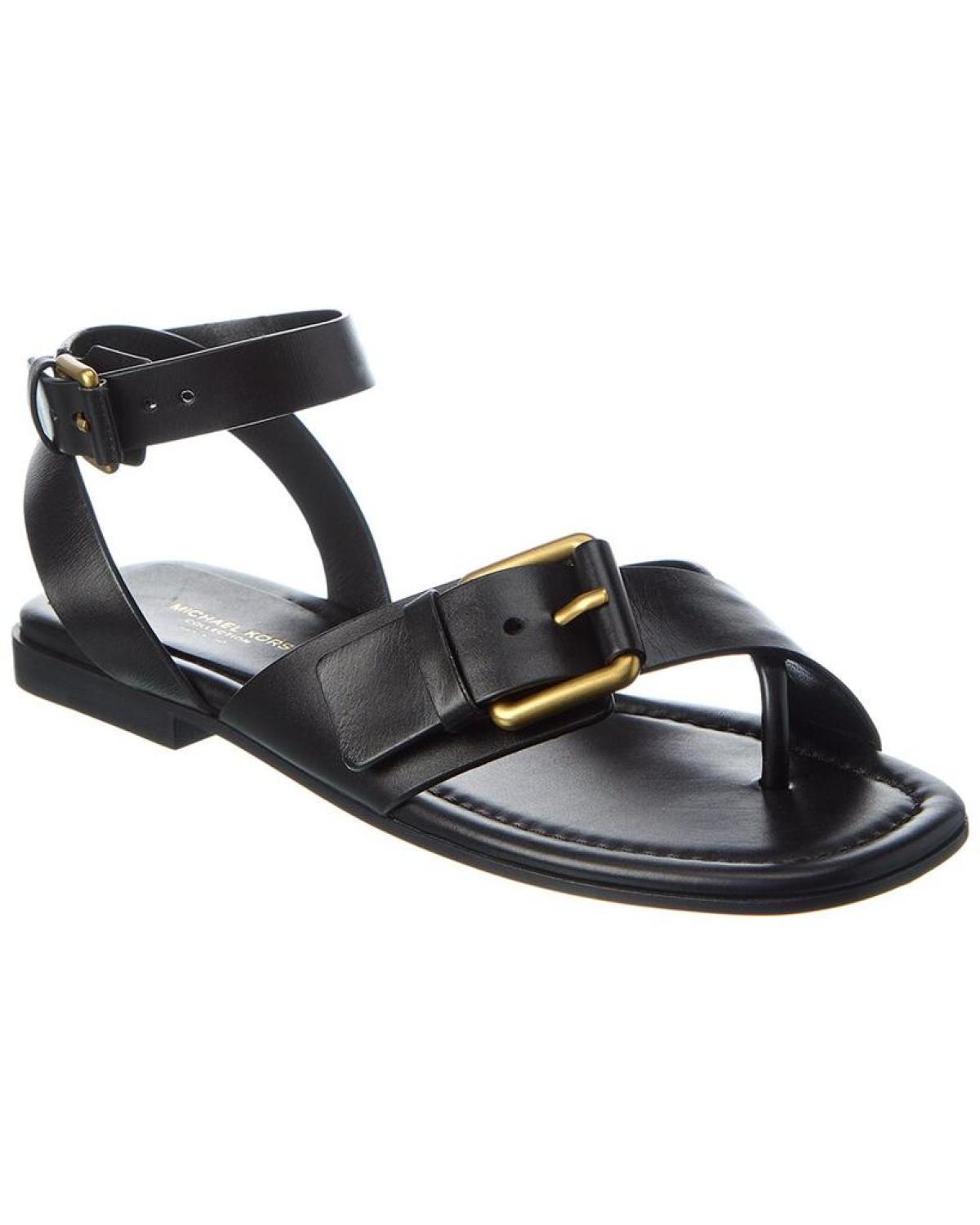 • About The Brand - All-American Styles For Easy Glamour And Luxurious Living. Langley Leather Sandal In Black Leather And Gold-Tone Hardware Smooth Insole Rubber Sole With Traction Made In Italy