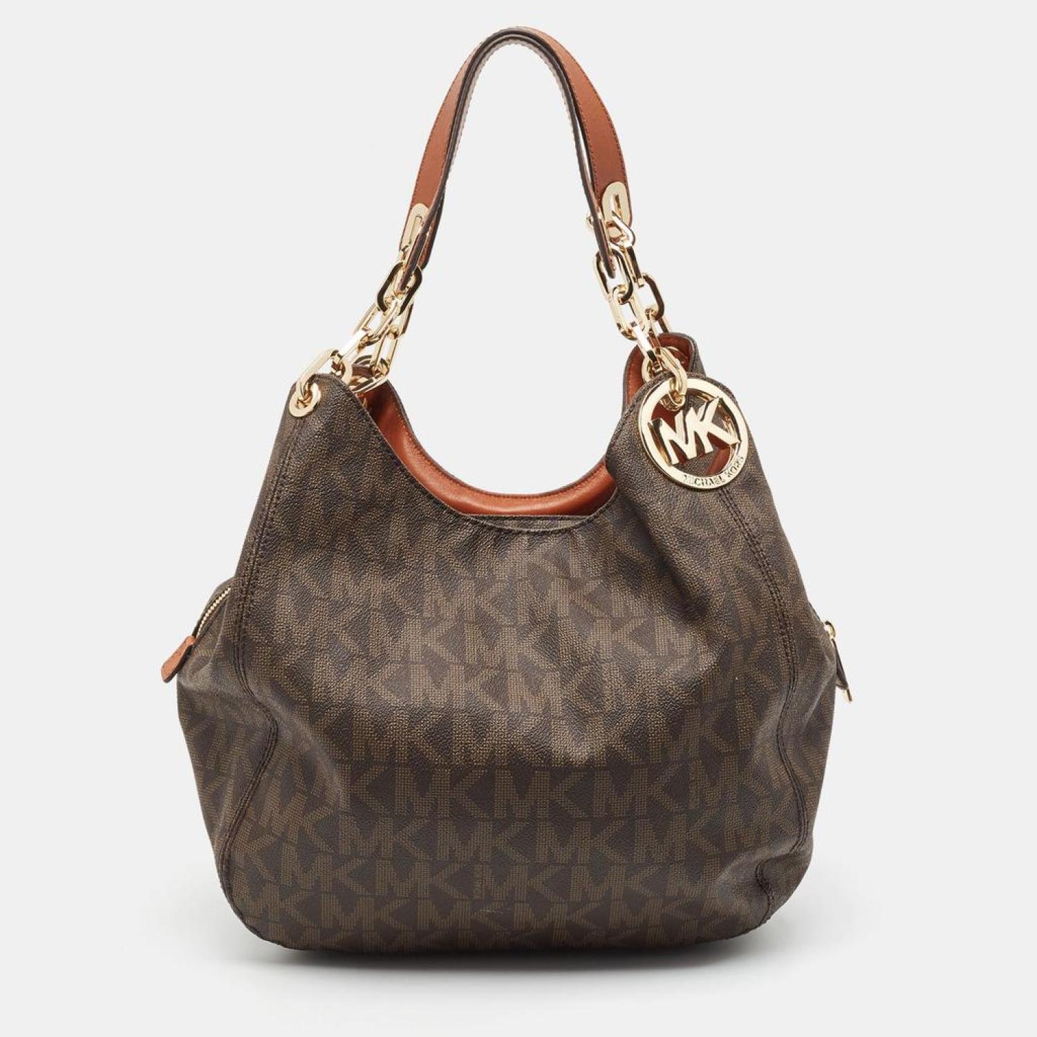 Michael Kors Dark Signature Coated Canvas And Leather Fulton Hobo