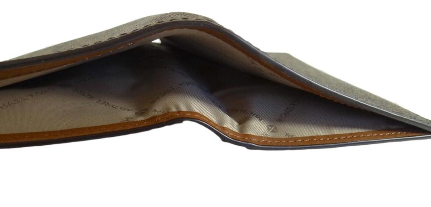 Made of leather and PVC MK signature, From MK outlet store, One bill compartment and four card pockets/slips, Six credit card slots, One clear window. Approximately weight - 0.43 lb, Gold hardware, Style - MD passport case. Model - 35T9GTVT1B. Measurements - Length - 4.5 x Height - 3.25 x Width - 2 Inches. Comes with original tags.