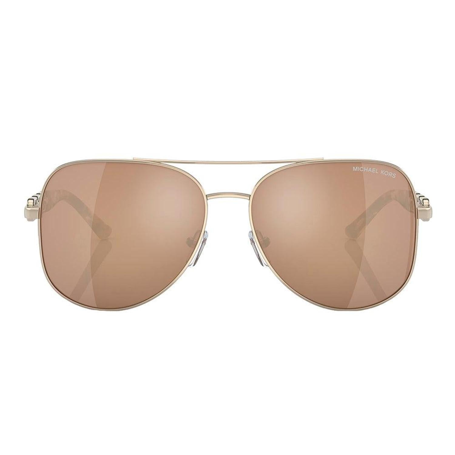 Michael Kors MK 1121 10147P 58mm Womens Light Gold Gold Mirror Lens SunglassesFrame Color - Light GoldFrame Style - AviatorFrame Material - MetalLens Color - Gold Mirror LensProtection - UV ProtectedIncludes - Michael Kors case, cloth and paperwork *may vary from pictureSize - Lens 58 mm x bridge 15 mm x arms 140 mm All measurements may vary