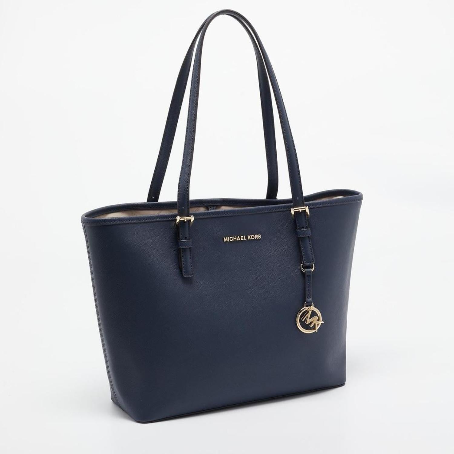 Michael Kors Navy Blue Leather Medium Jet Set Travel Tote
