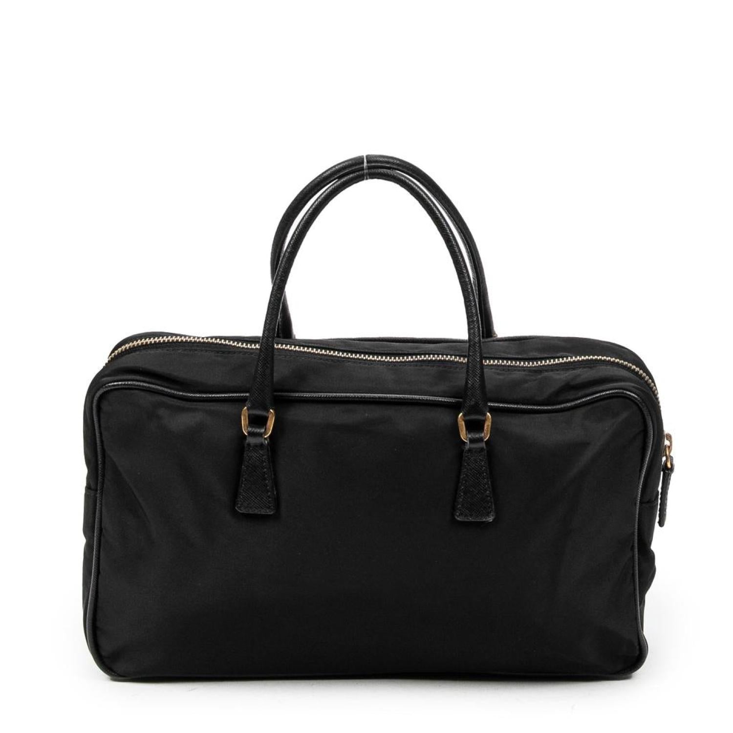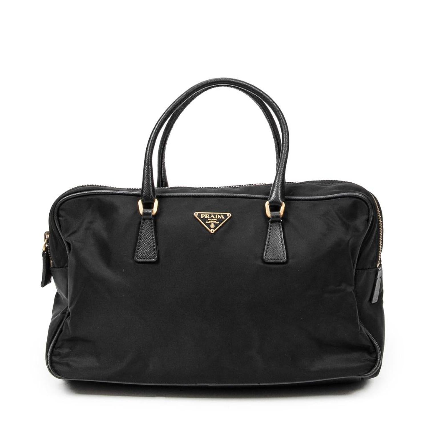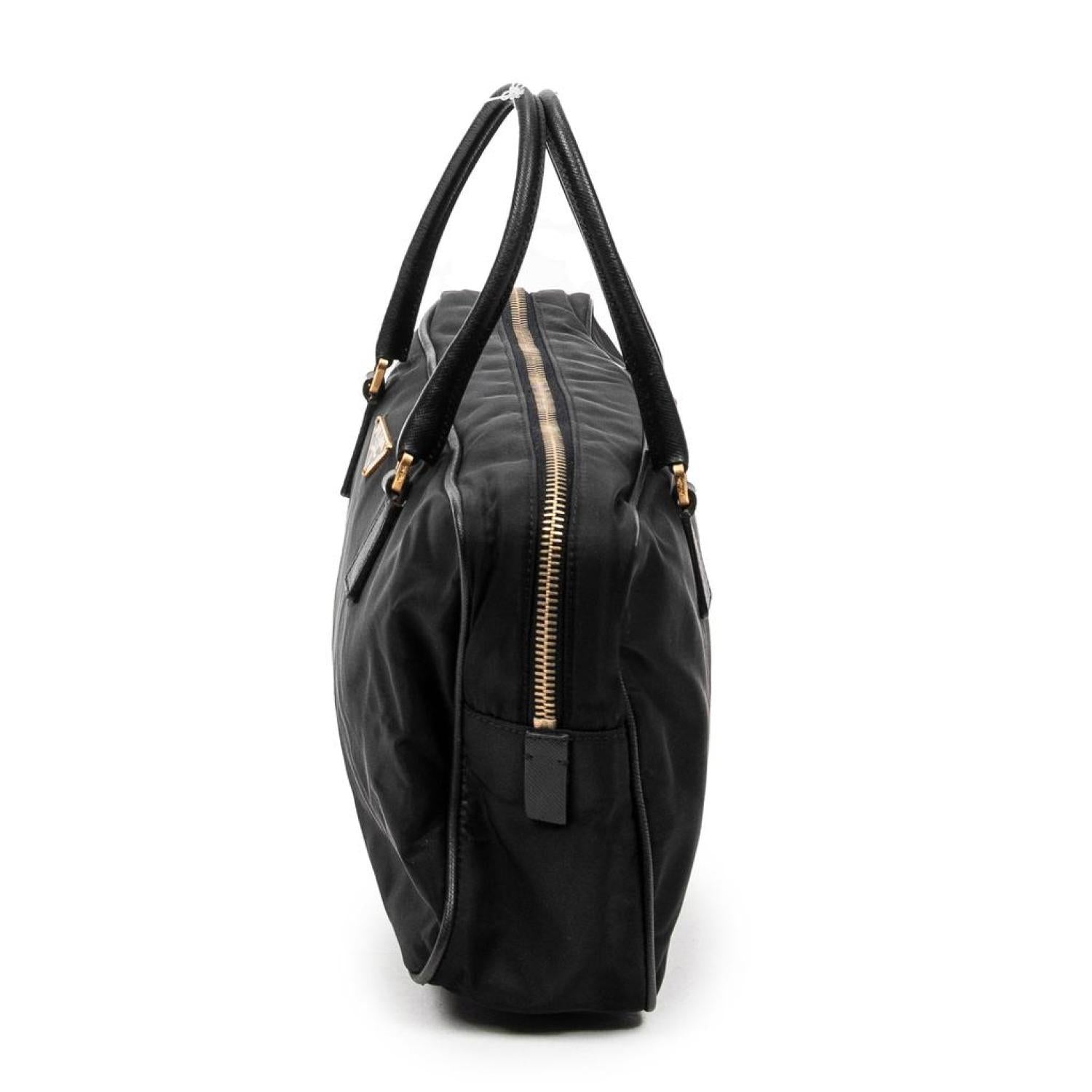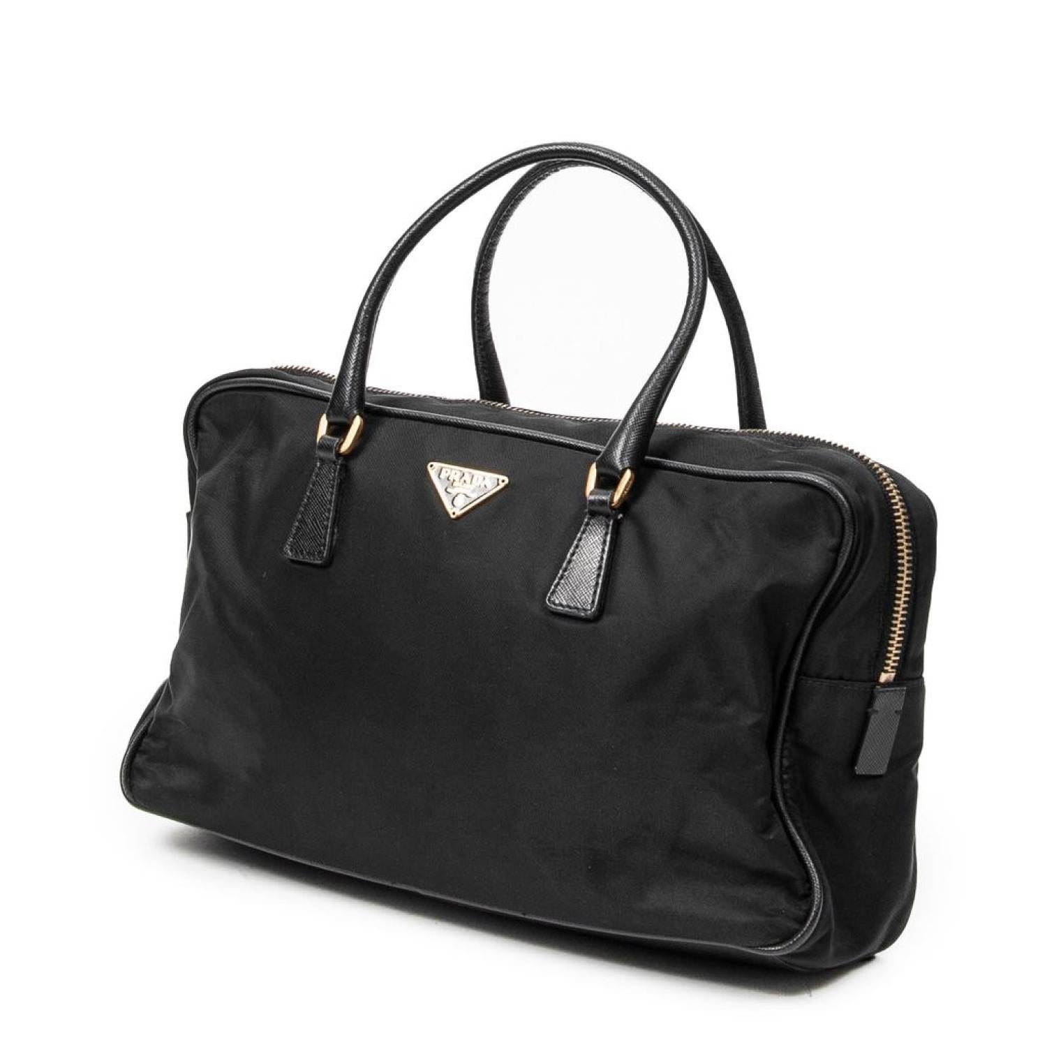 - Prada Handbag in Black Nylon Canvas and Gold hardware. Dimensions - 27,5*16*7,5cm. Serial number - MV566. Inclusions - card. Pre-Owned