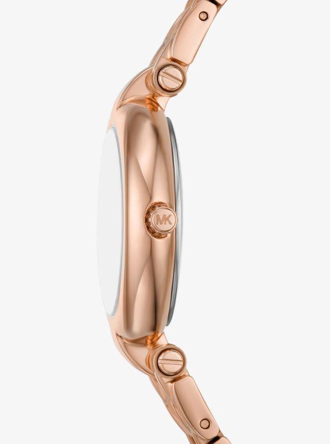 • The mini Laney watch is a masterclass in understated elegance. A circular bezel anchors the bracelet strap, while the oxblood face—complete with Roman numeral markers—puts a unique spin on the classic style. Made from gold-tone plated stainless steel, it’s designed to be worn for years to come.