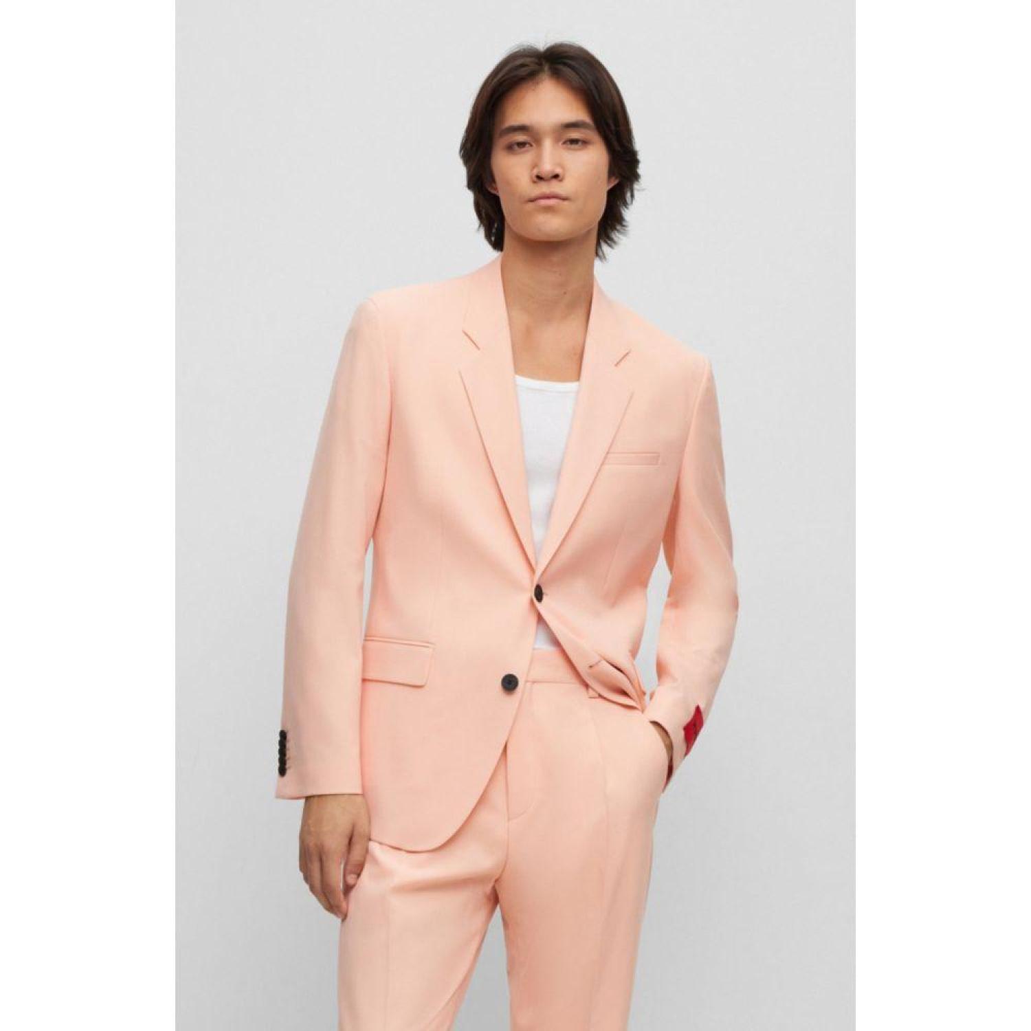 A distinctive two-piece suit by HUGO Menswear, tailored to a modern fit in patterned performance-stretch fabric blended with virgin wool.