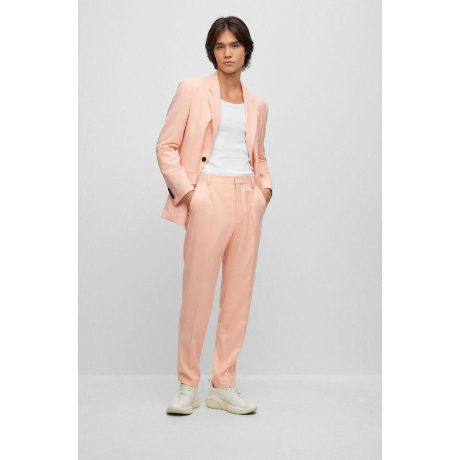 • A distinctive two-piece suit by HUGO Menswear, tailored to a modern fit in patterned performance-stretch fabric blended with virgin wool.
