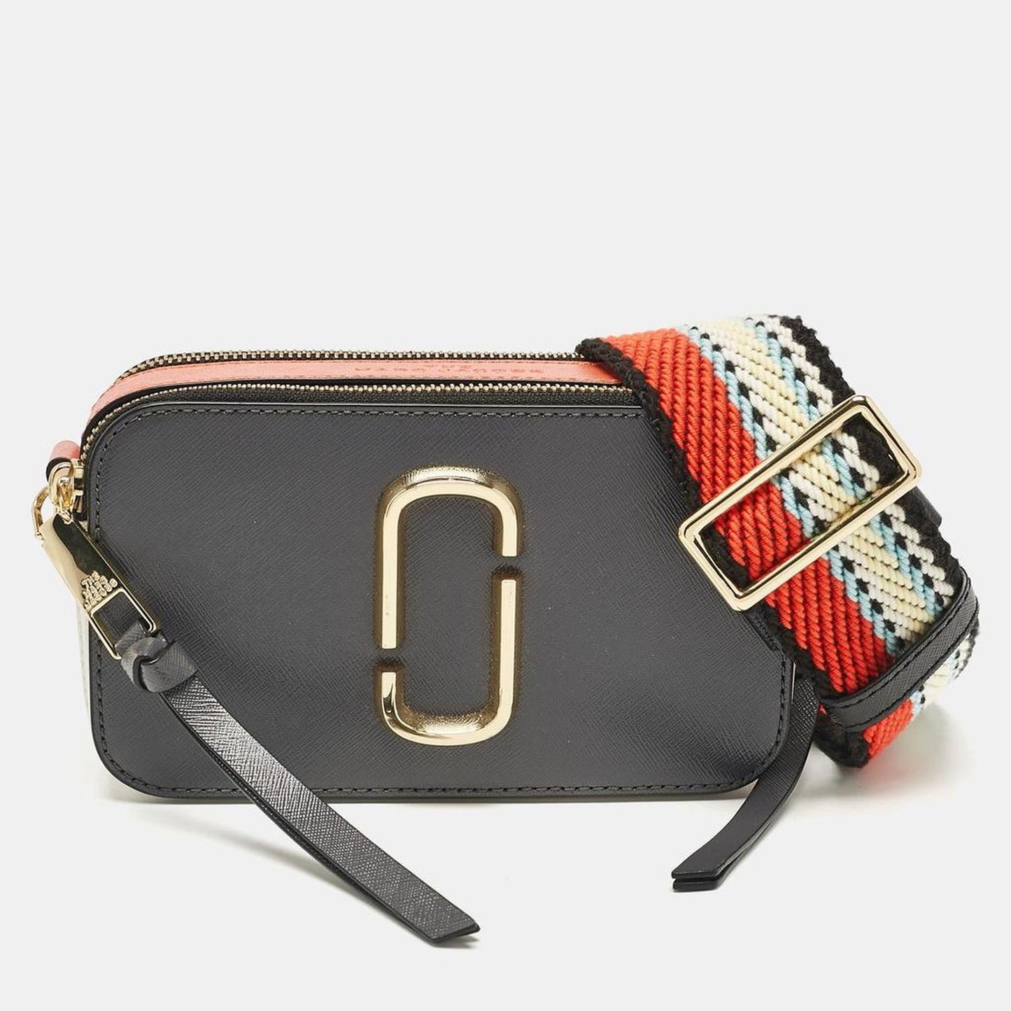 • This compact structured and stylish bag by Marc Jacobs will surely be your go to accessory. The unmistakable logo on the front characterizes the creation and the use of three colors offers vibrancy and versatility. The bag comes with a broad strap that can be removed for a clutch carrying option. The creation can be used to create a street style formal and even a casual look making it investment worthy