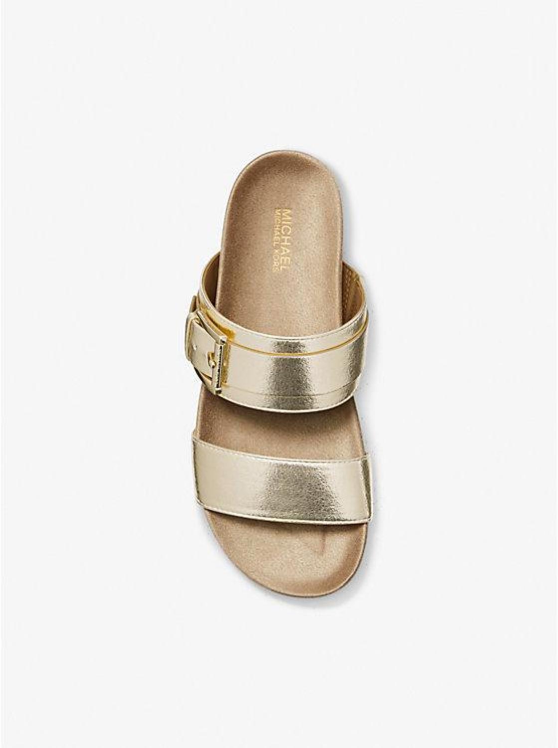 • Master warm-weather chic with our metallic Mylah sandals. Designed with comfort in mind, featuring a buckled detailing and contoured footbeds. Continue the laid-back mood by pairing them with a T-shirt and shorts.