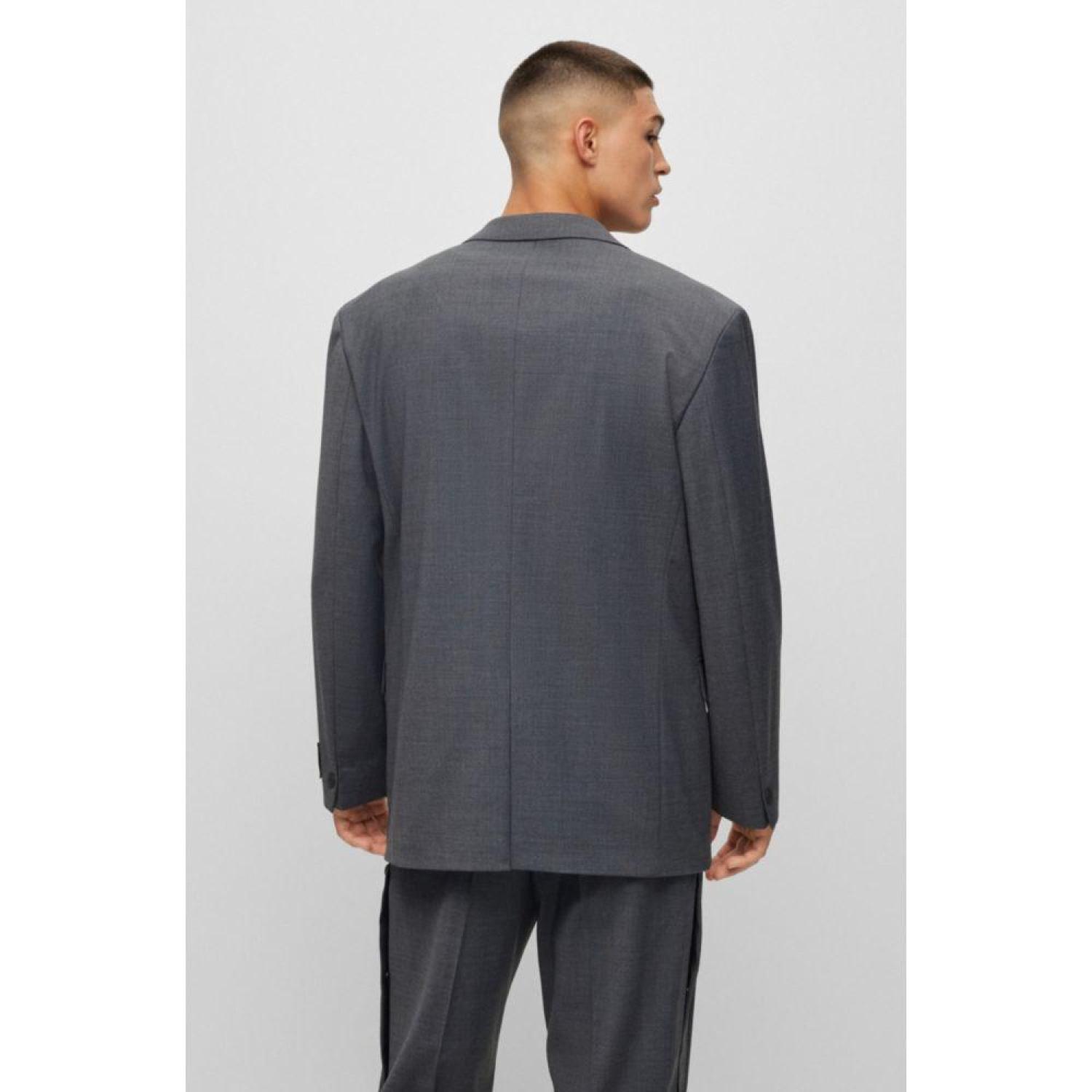 A single-breasted oversized-fit jacket by HUGO Menswear, fully lined and tailored in performance-stretch fabric blended with virgin wool.