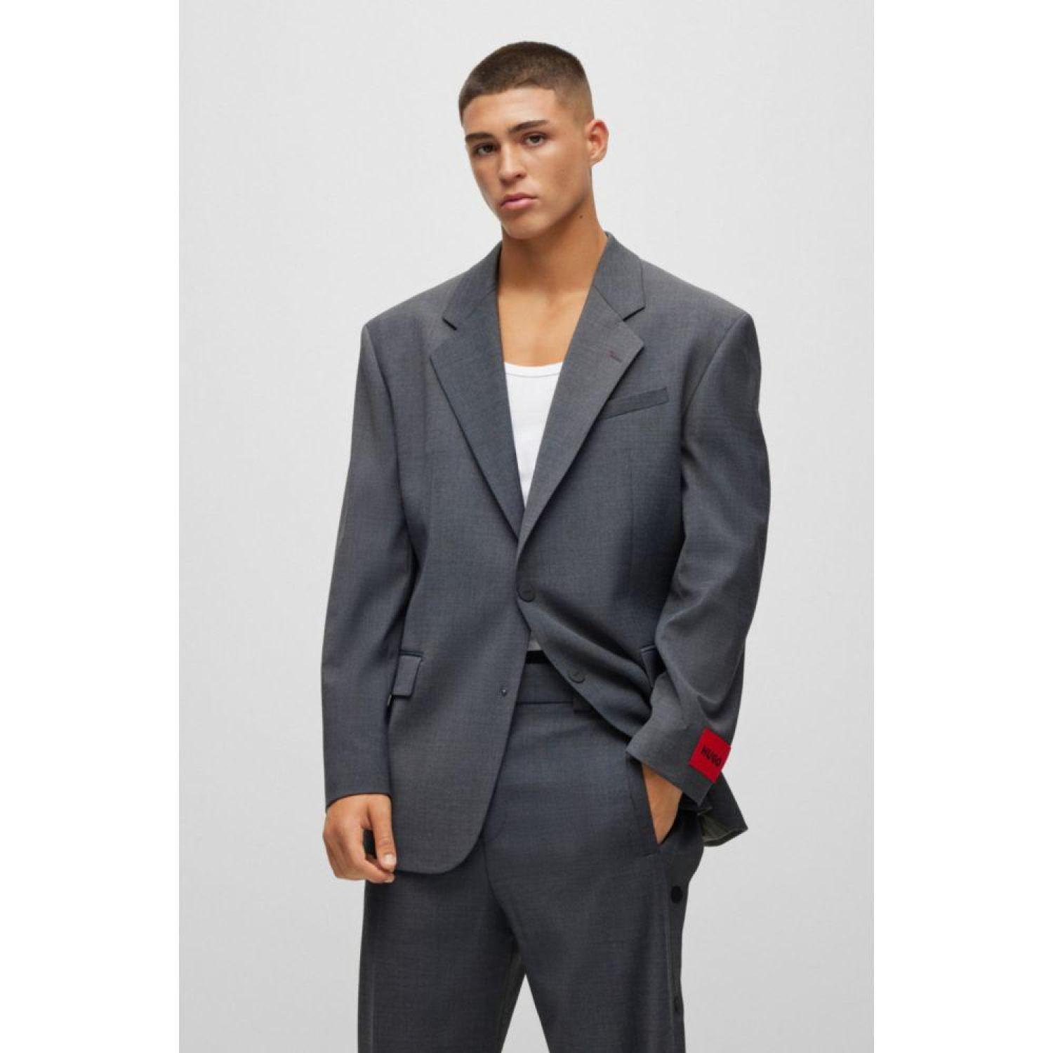 • A single-breasted oversized-fit jacket by HUGO Menswear, fully lined and tailored in performance-stretch fabric blended with virgin wool.