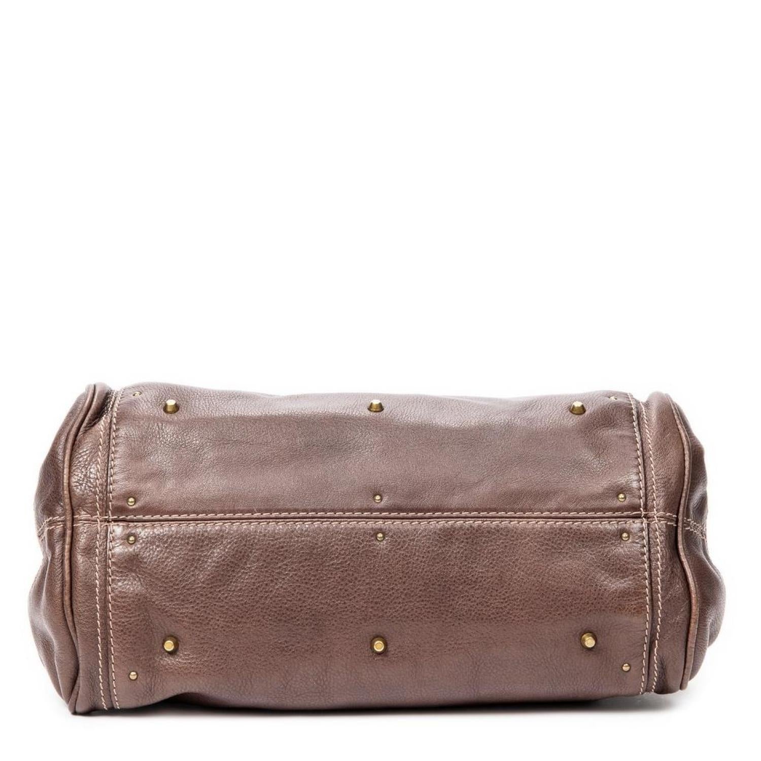 Chloe Shoulder Bag in Dark Brown Grained Leather and Gold/Silver hardware. Dimensions - 36*19*22cm. Serial number - 04 09 51 5243. Inclusions - Cadenas, key, card.