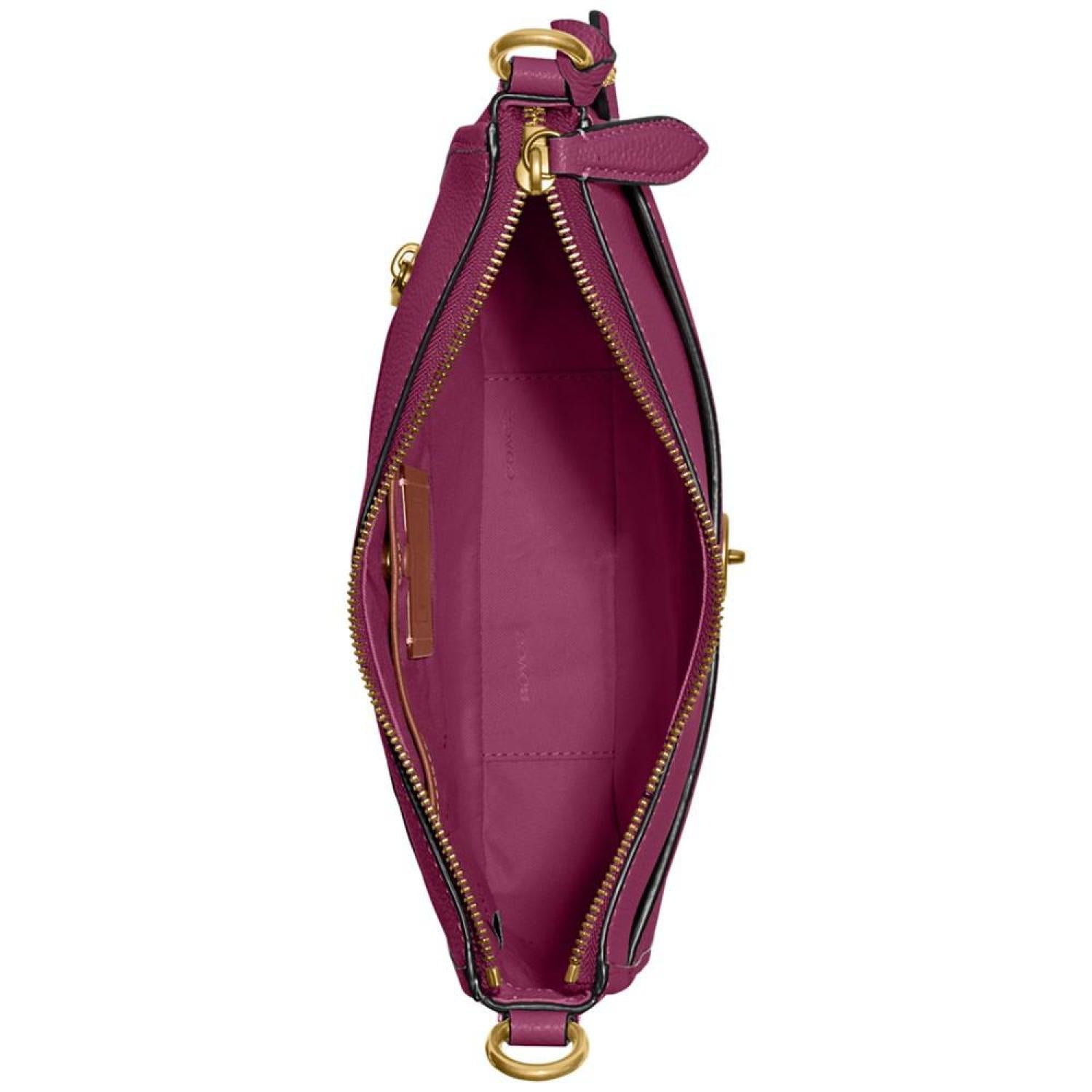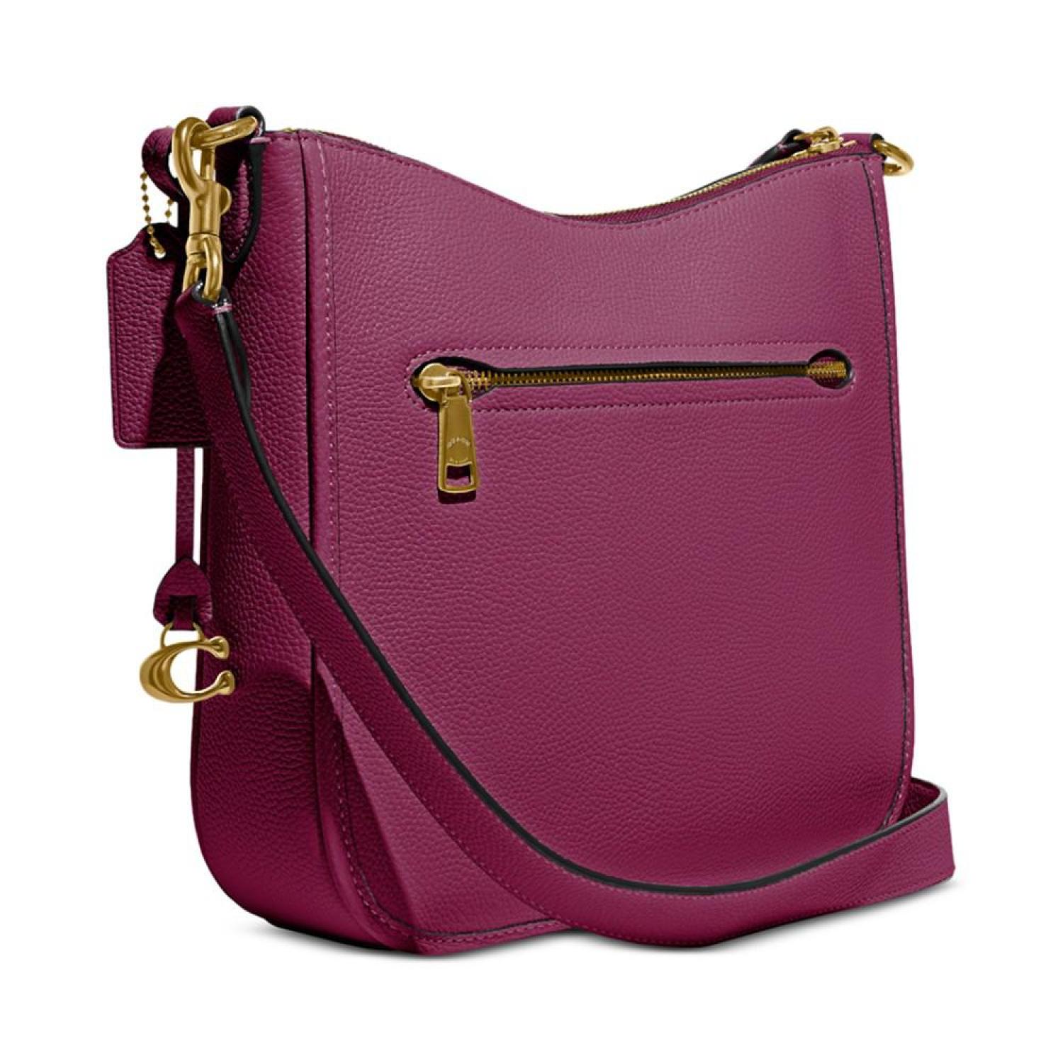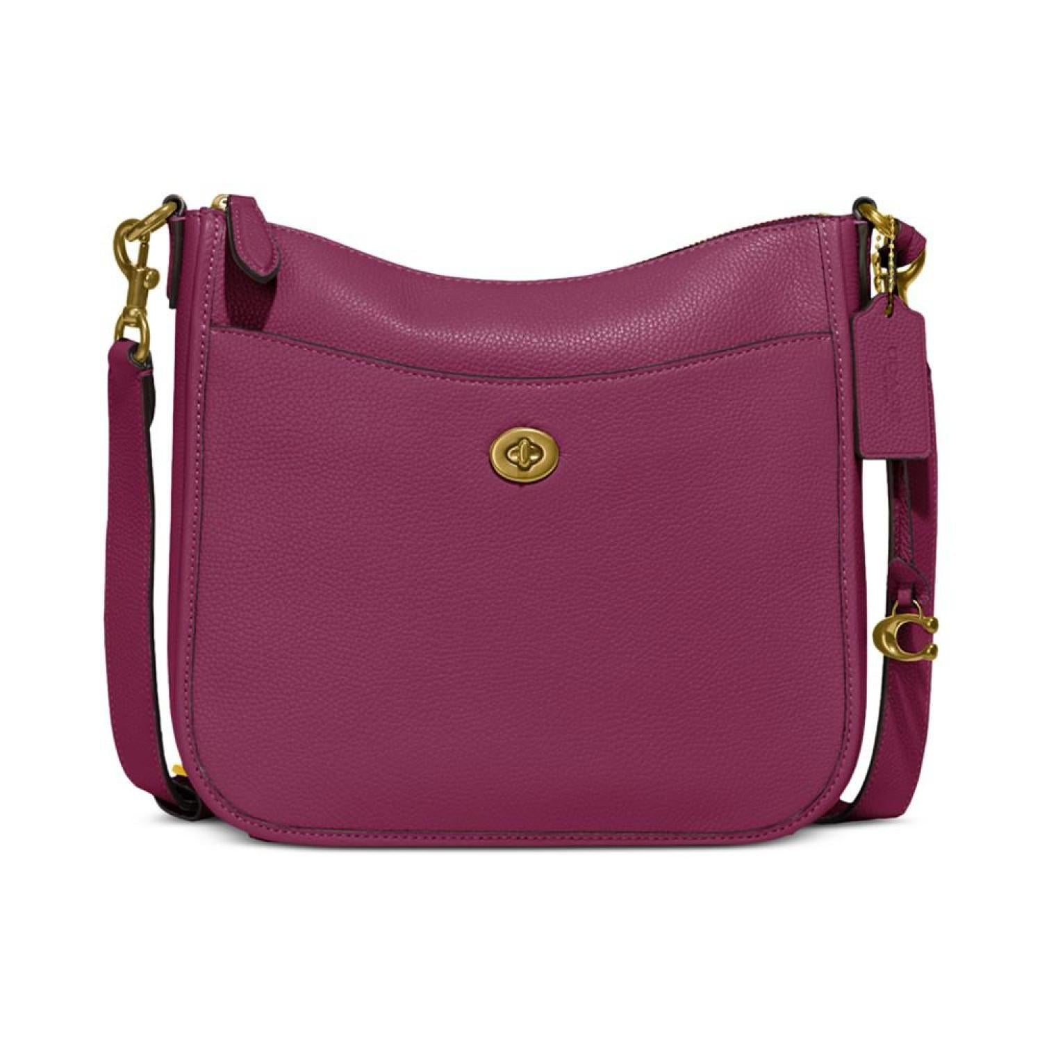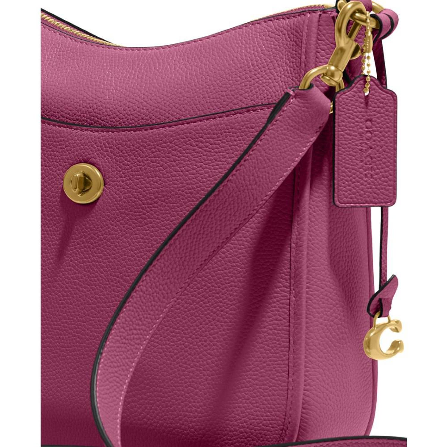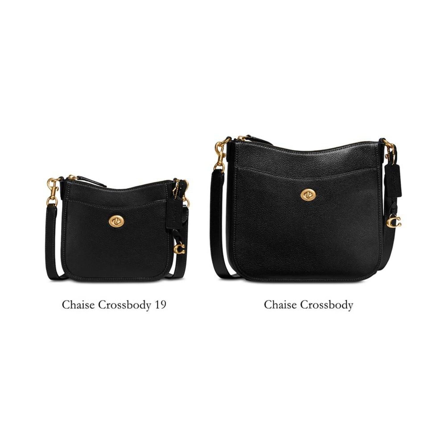 Coach's Leather Chaise Crossbody is perfect for everyday use. Easily access your belongings with the exterior pockets and personalize your style with the variety of colors to choose from. Small sized bag; 9-3/4"W x 10-1/2"H x 2-1/4"D (width is measured across the bottom of bag) Silhouette is based off 5'9" model 21-1/2" detachable strap Zip top closure with outside turn-lock closure Exterior zip pockets Interior snap pocket Leather Professionally clean Imported