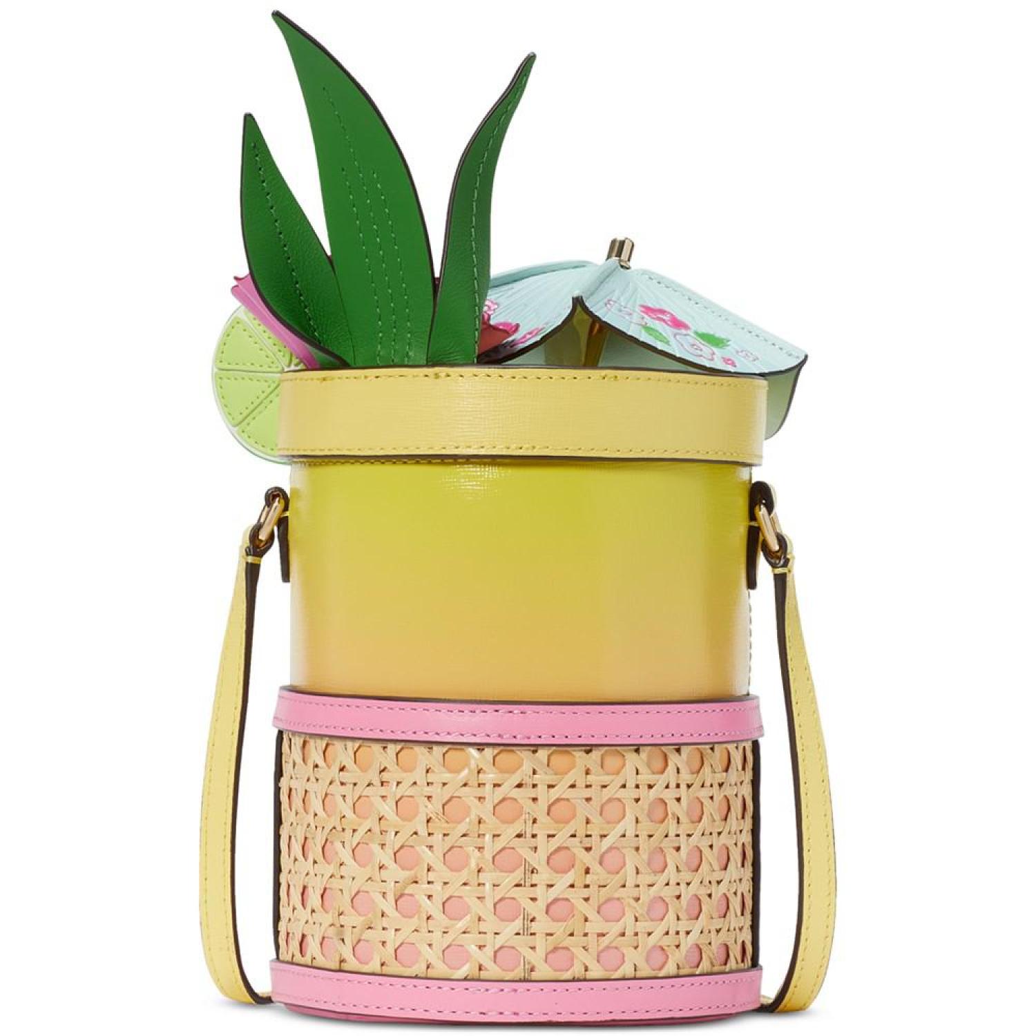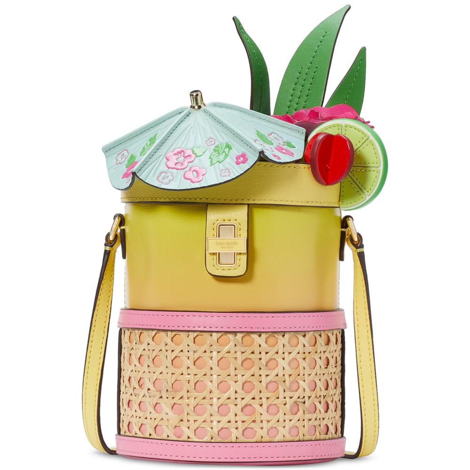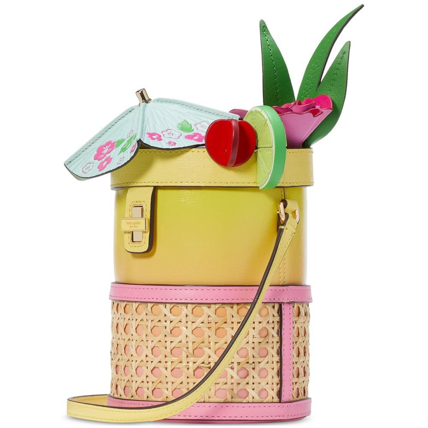 It's happy hour every hour with kate spade new york's 3D top-handle bag made in wicker and leather with colorful details.