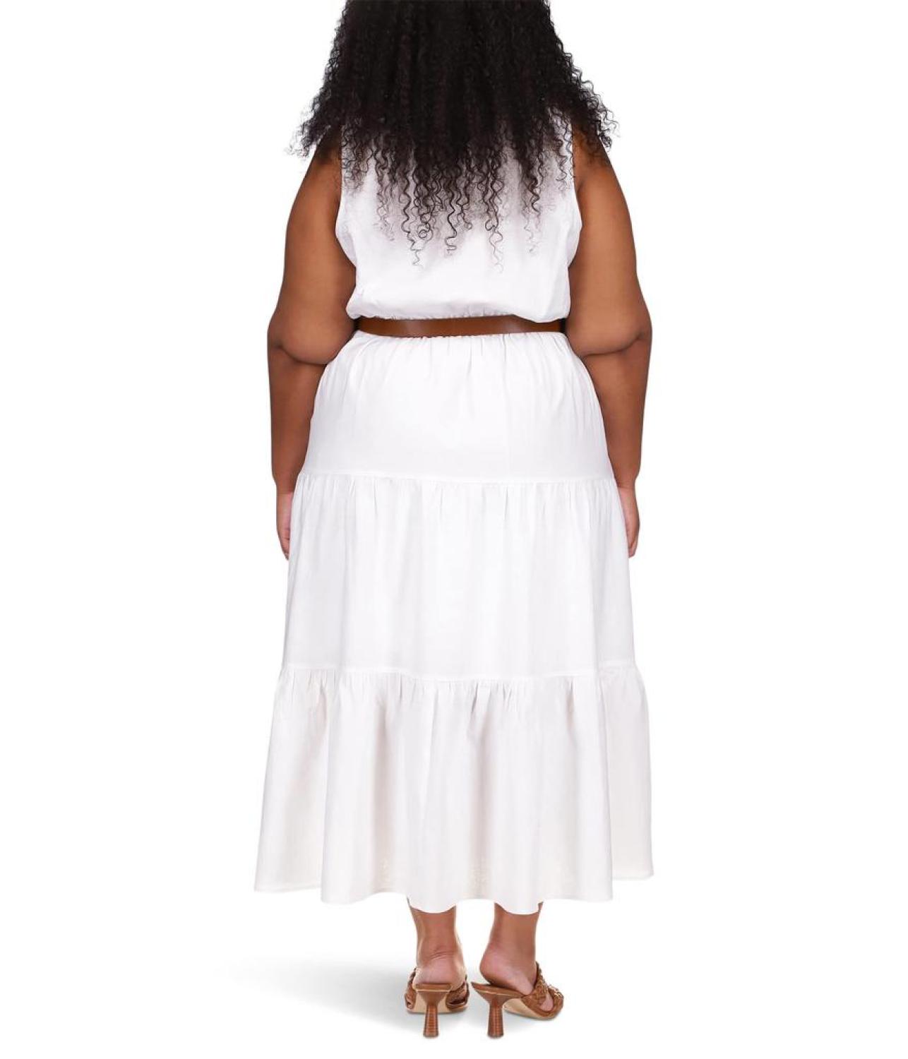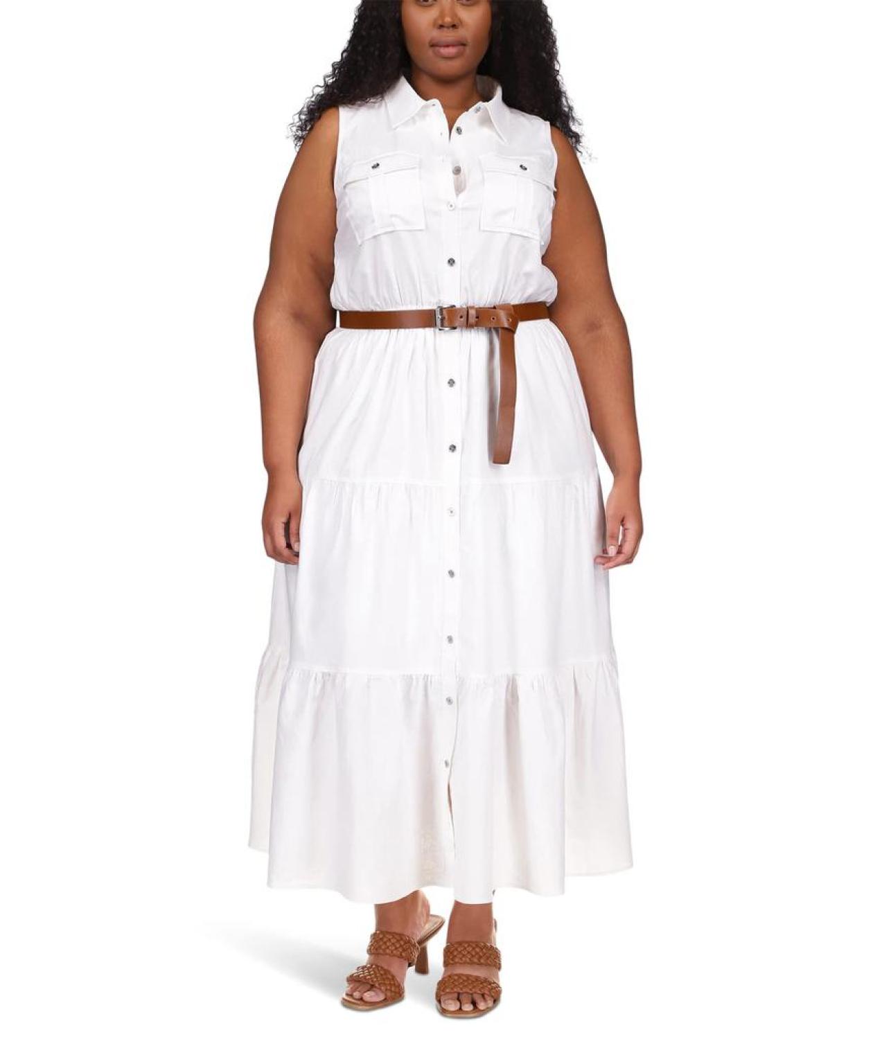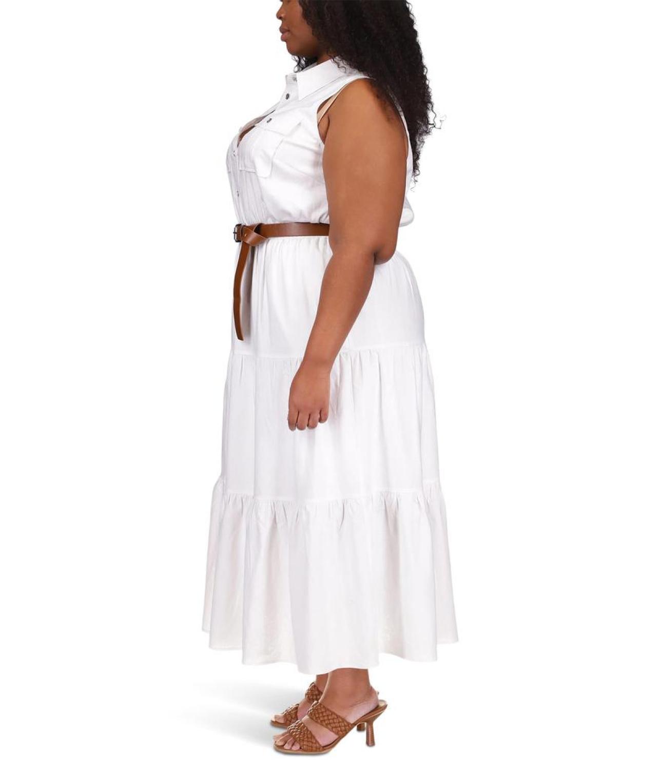 Get ready in the fabulous and classy design of the MICHAEL Michael Kors® Plus Size Linen Slub Tiered Dress.