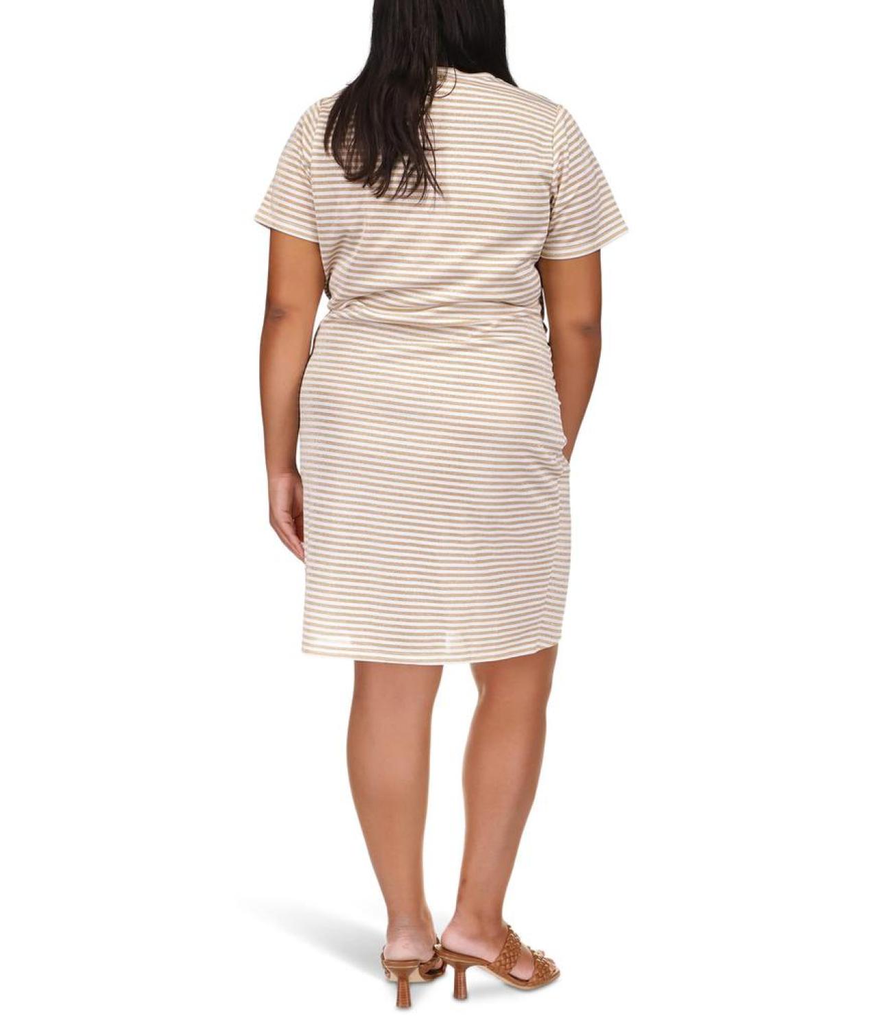 • Look gorgeous in the classy design of the smooth MICHAEL Michael Kors® Plus Size Stripe Side Ruched Zip Dress.