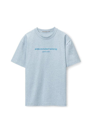 glitter washed long sleeve tee with "alexander wang new york" glitter puff logo printed on front in light blue heather jersey