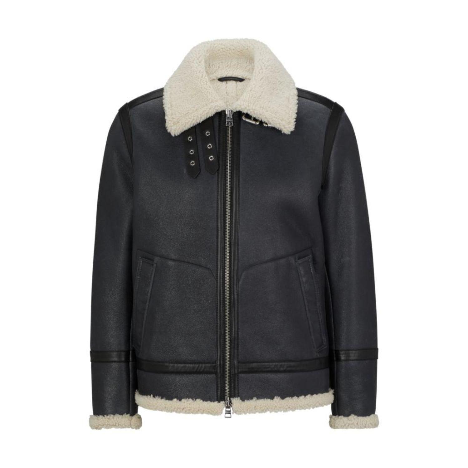 A contemporary flight jacket cut to a regular fit in shearling with buckle trims by HUGO Menswear.